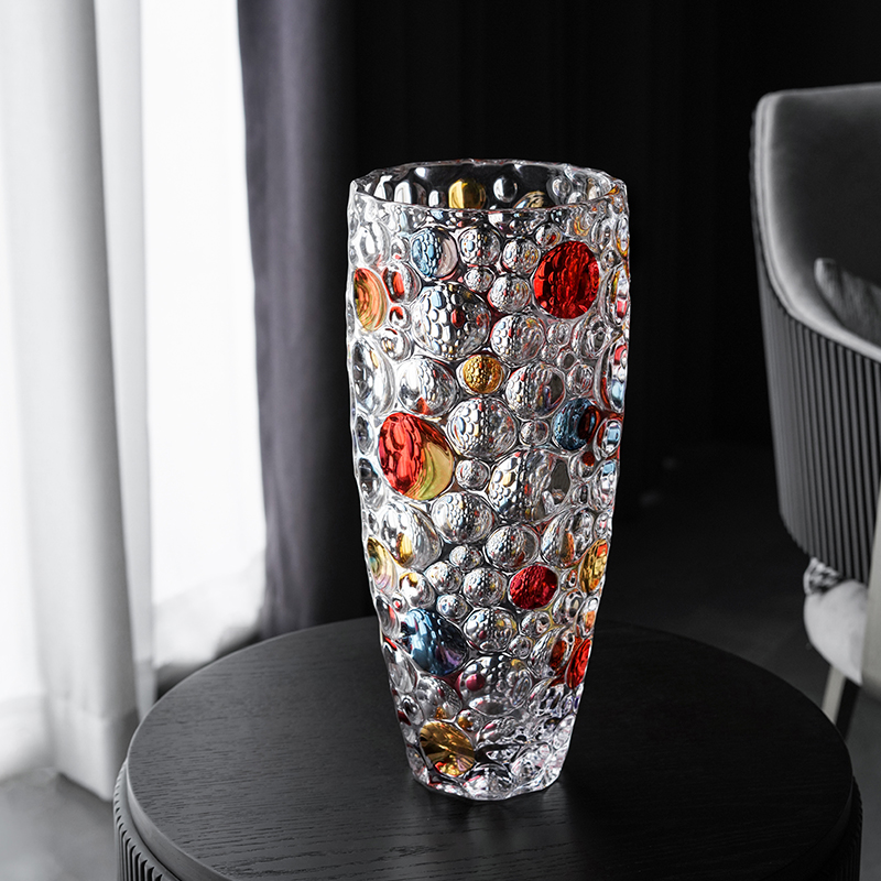 Bohemia进口水晶玻璃北欧轻奢插花客厅摆件彩色花瓶装饰手工描彩