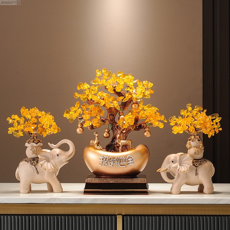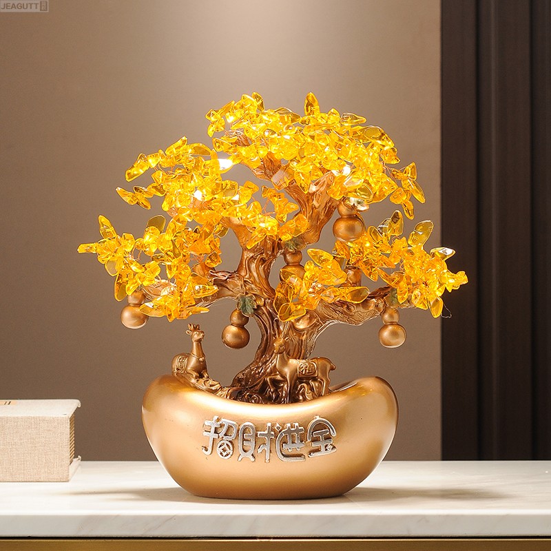 发财树摇钱树金元宝新中式摆件办公室前台酒柜装饰乔迁开业礼物品