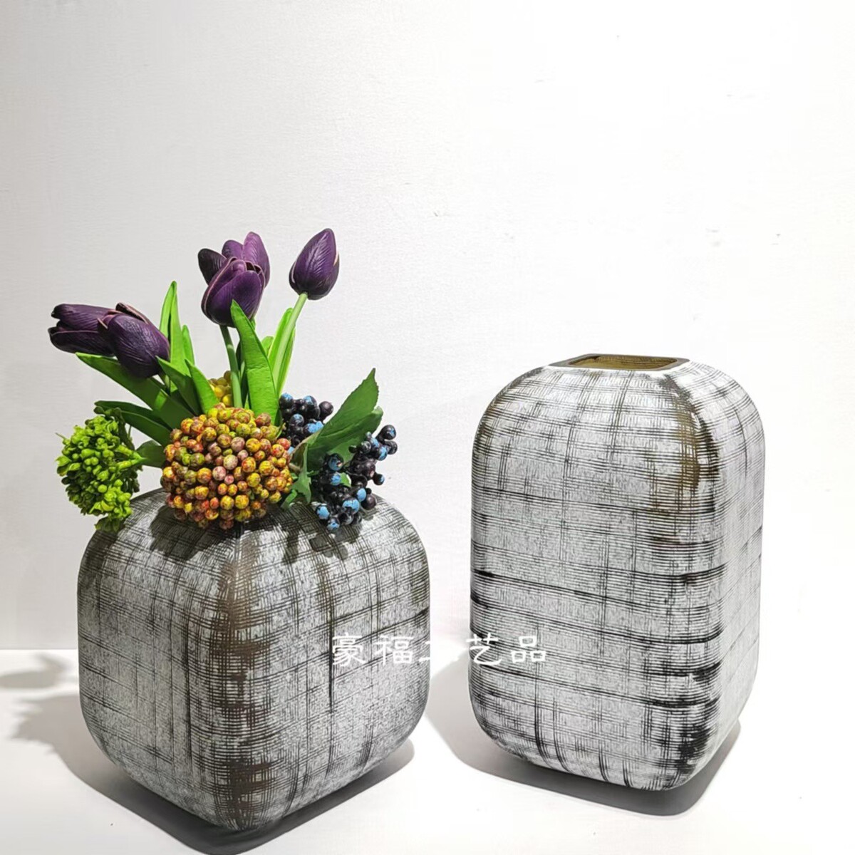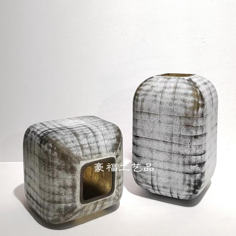 热销轻奢现代简约刻磨玻璃花瓶插花摆件家居软装桌面样板房饰品摆