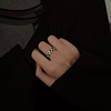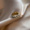 棋盘戒指女黑白格子指环欧美钛钢不锈钢小众设计师中指食指配饰