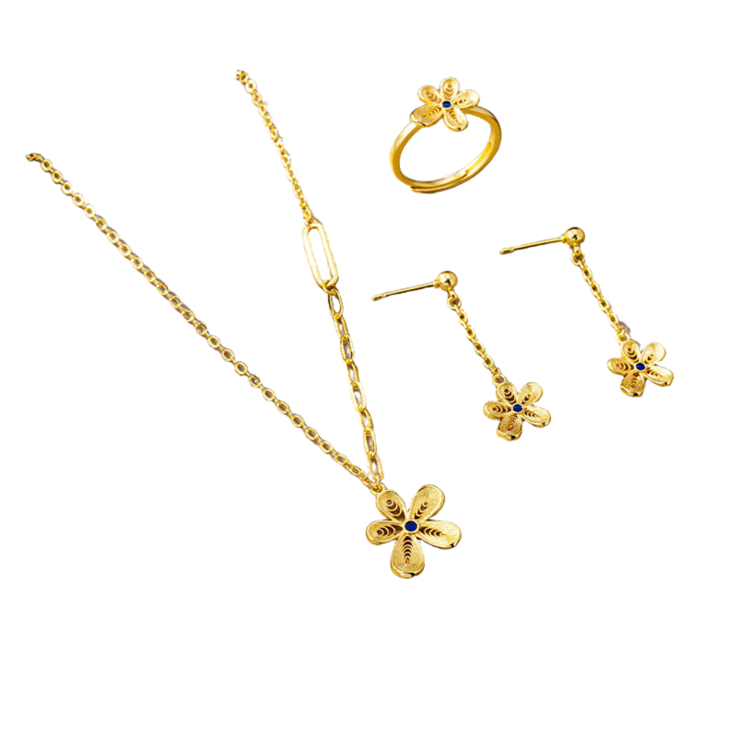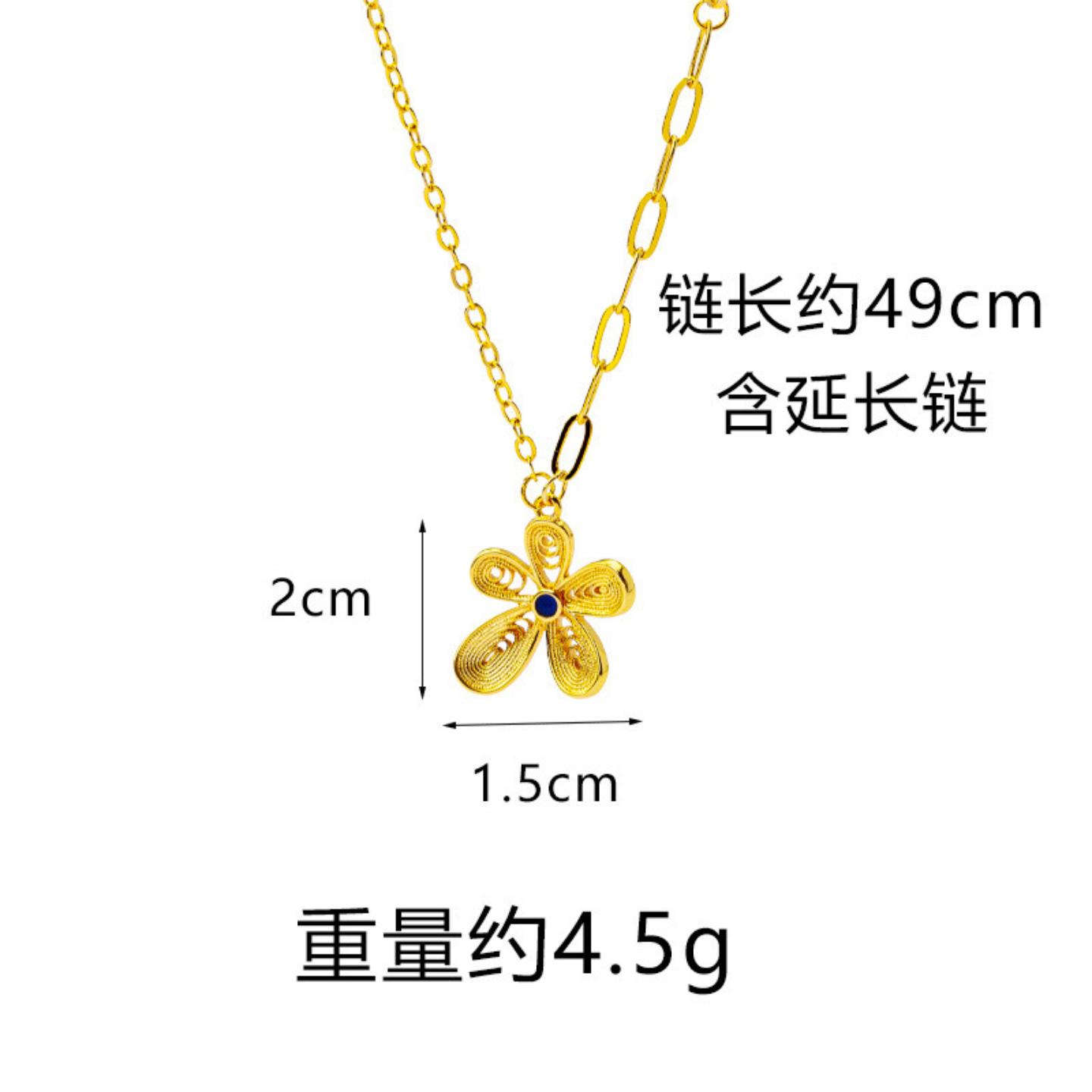 爆款越南沙金项链简约镂空花朵戒指耳钉套装潮流久不掉色饰品直销