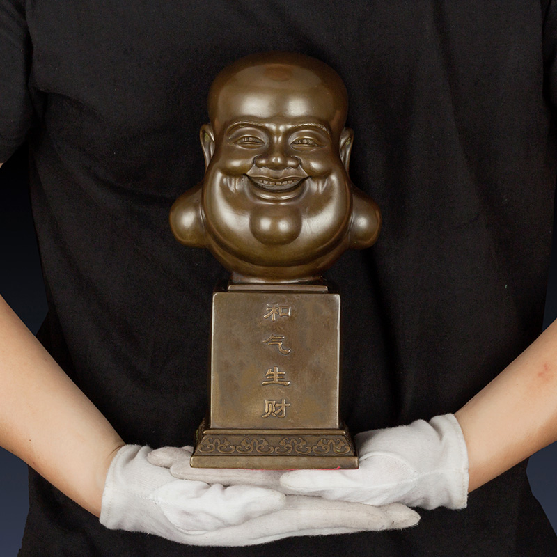 纯黄铜弥勒佛摆件工艺品铜笑佛笑口常开礼品和气生财家居装饰品佛