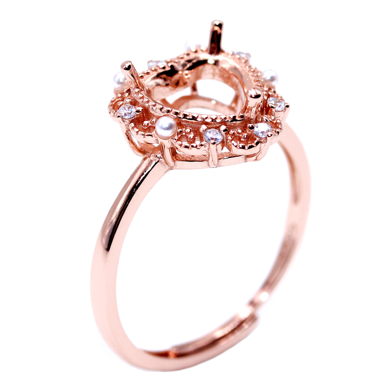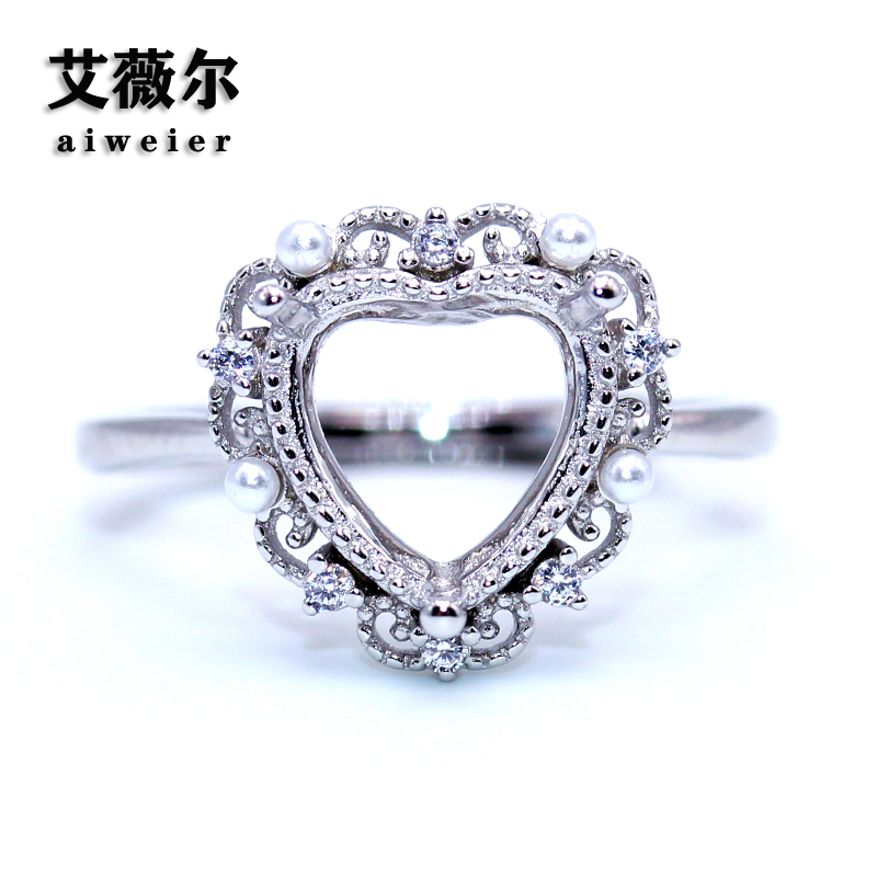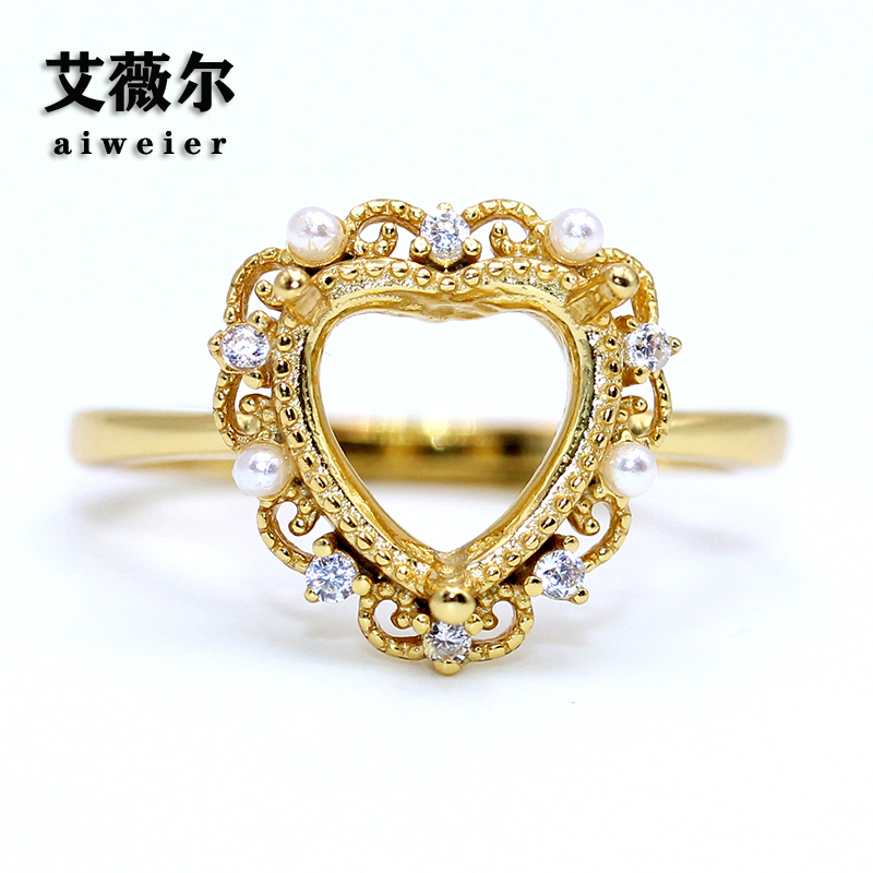 精工s925纯银戒指托心形戒托定制代镶嵌宝石18k金8*8-10*10-12*12