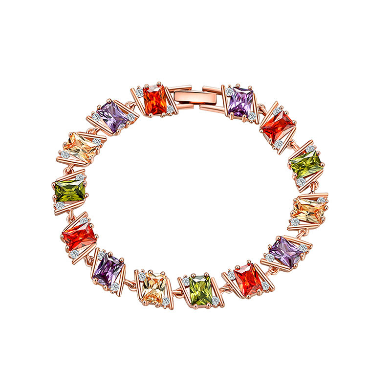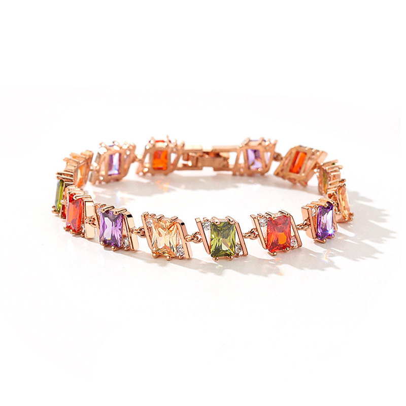 菱形彩色水晶锆石手链女新款轻奢小众高级感几何精致玫瑰彩金手饰
