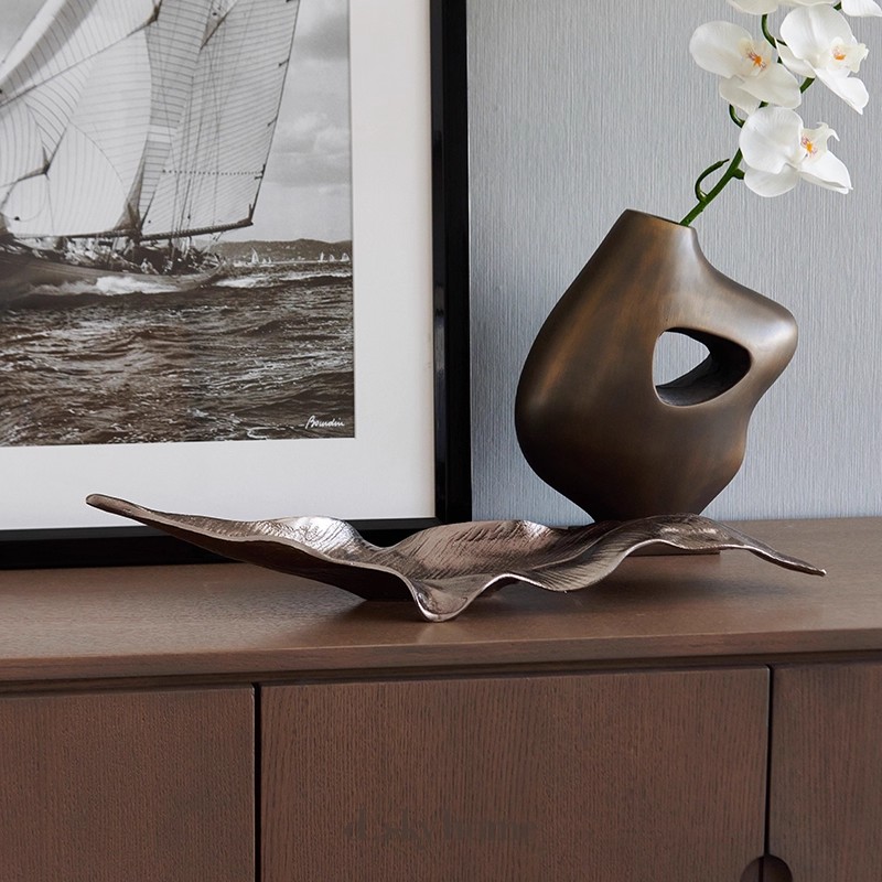 进口树叶形状托盘设计师茶几艺术品装饰盘收纳摆件抽象叶子水果盘