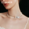 ZEGL设计师绸缎光遇系列珍珠银链双层项链女款2025新款蝴蝶结颈链