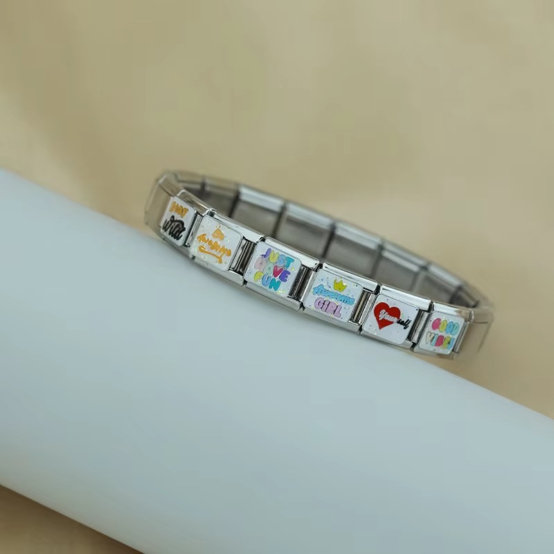 Hapiship意大利模块手链DIY英文设计小众拼接钢带链闺蜜礼物礼品