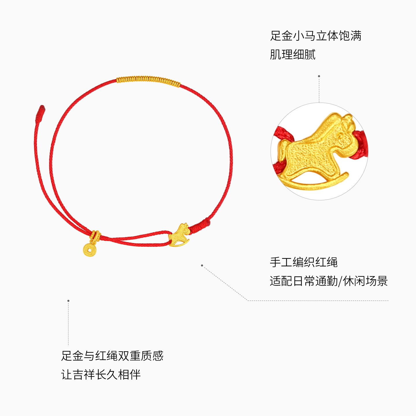 潮宏基好事发生黄金手链足金手绳手饰生肖马本命年礼物 计价