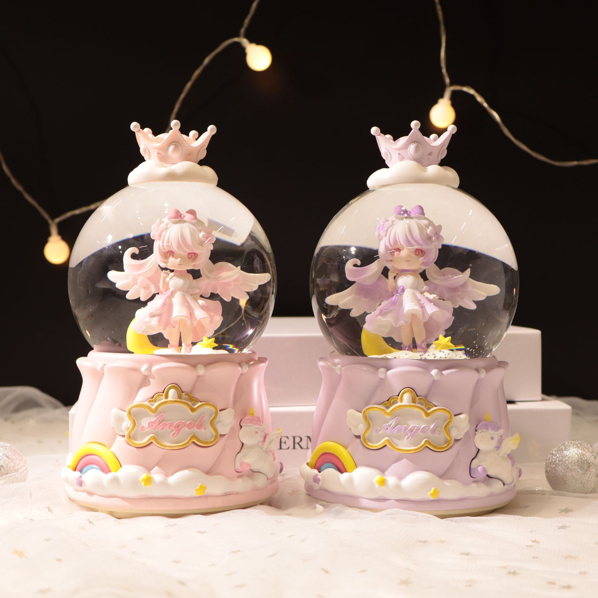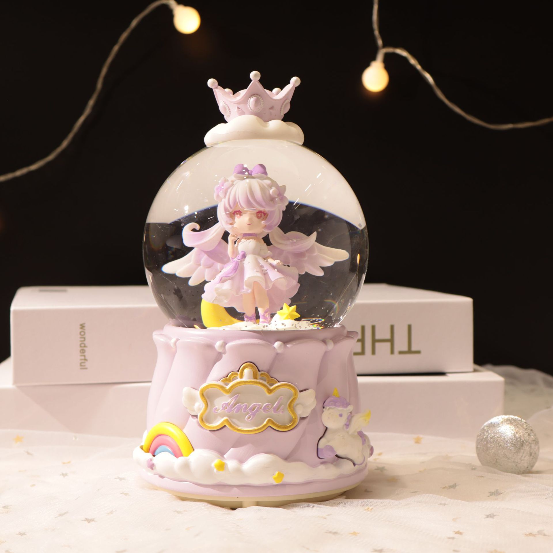 天使女孩大号水晶球音乐盒厂家直销卧室音乐灯光氛围装饰品摆件