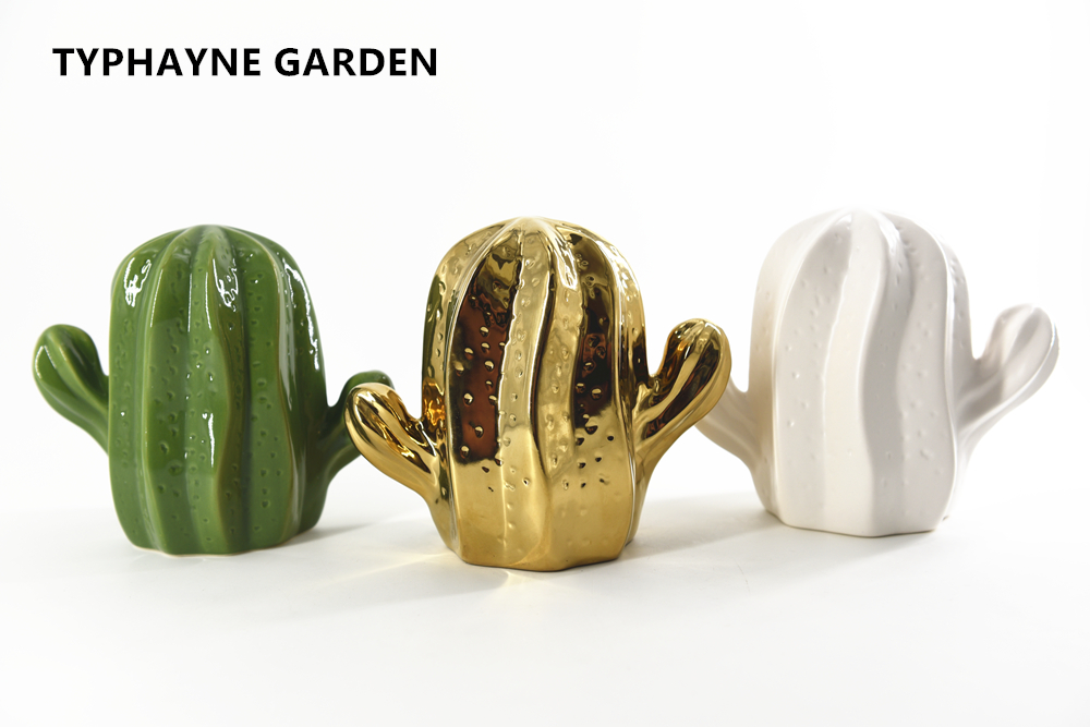 TG 出口美国金色乳白色绿色仙人掌摆件套件 家居饰品摆件