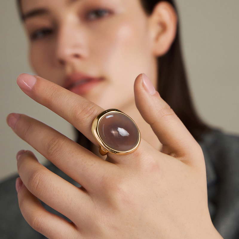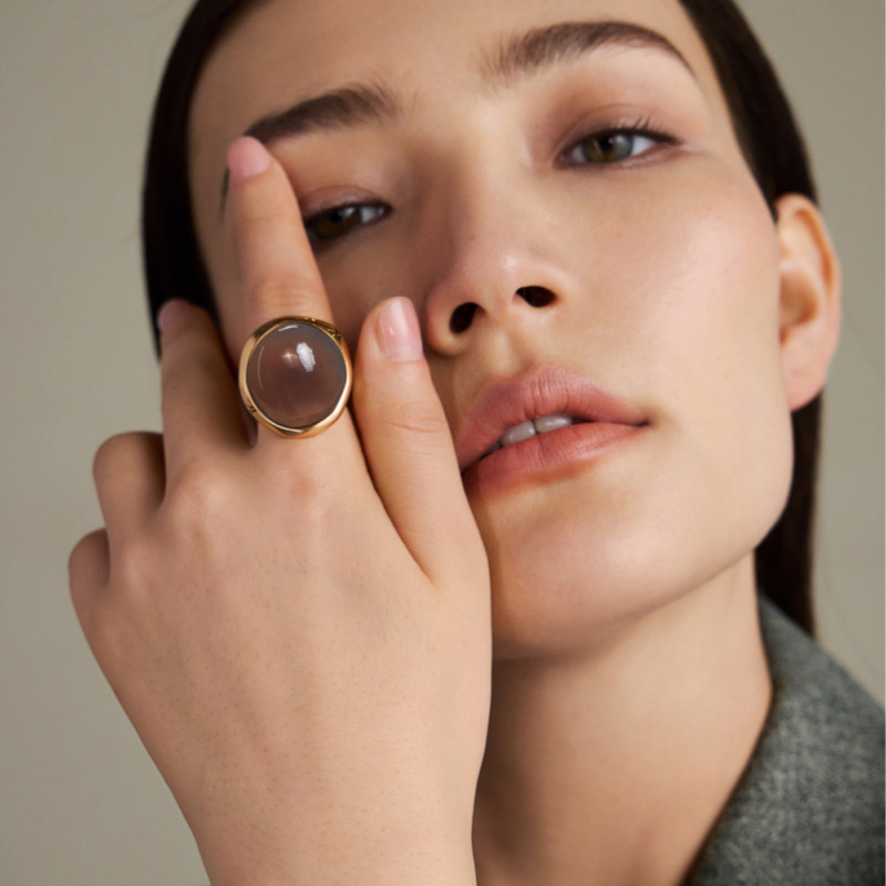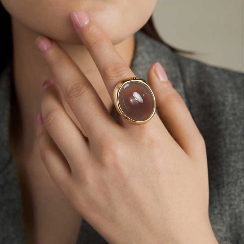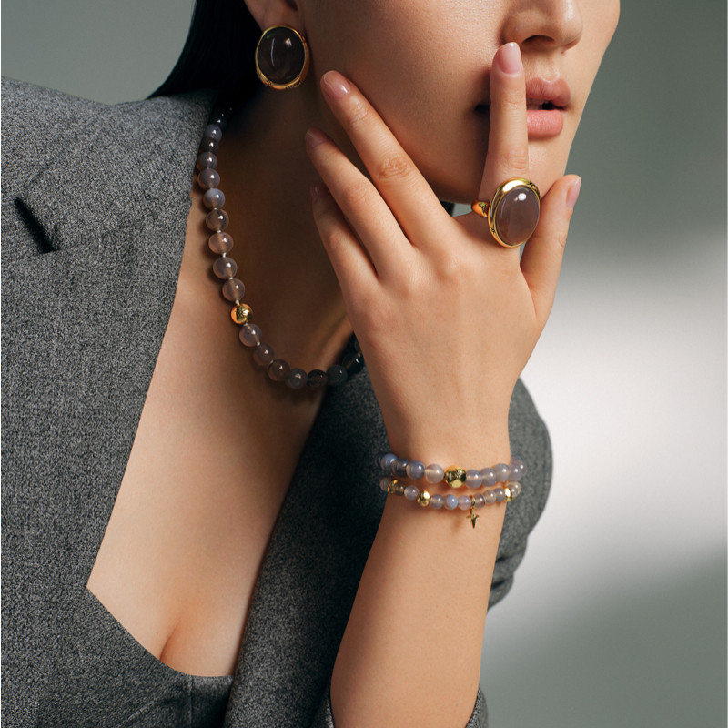 Fellala/翡拉拉「满月」系列原创设计灰玛瑙戒指高级指戒时尚