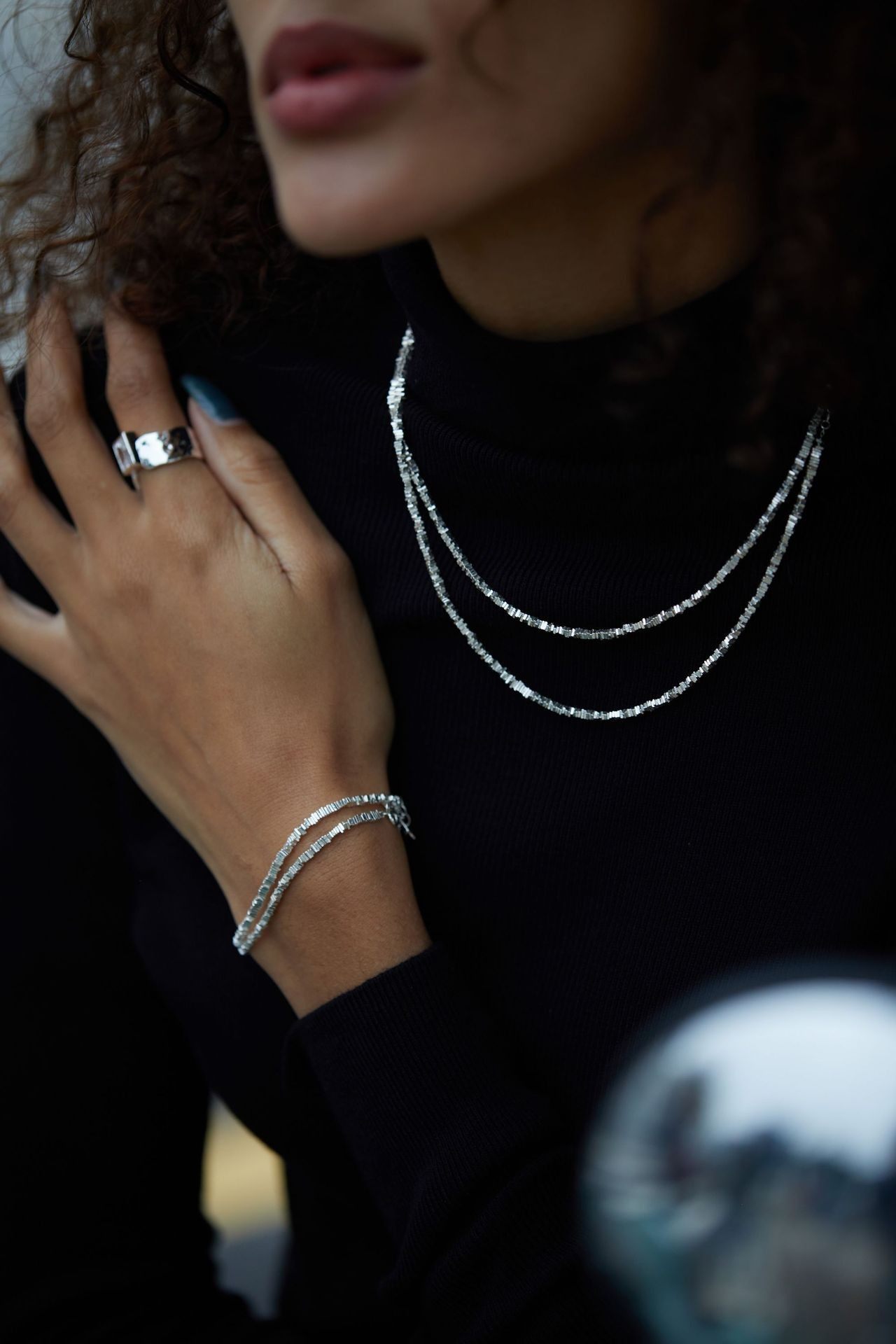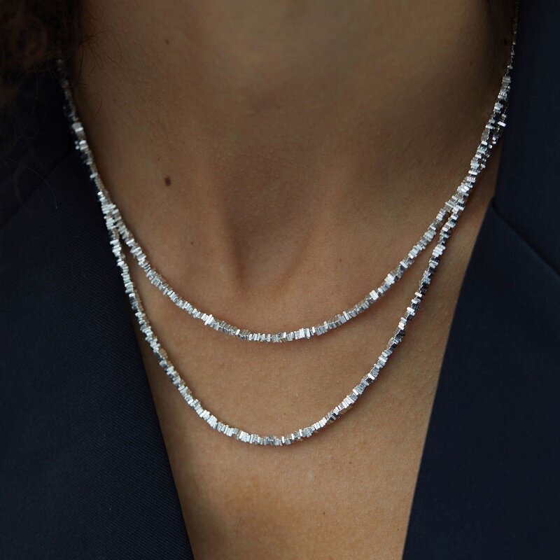 【K社制造】项链s925纯银碎银子方块片拼接锁骨链轻奢颈链男女