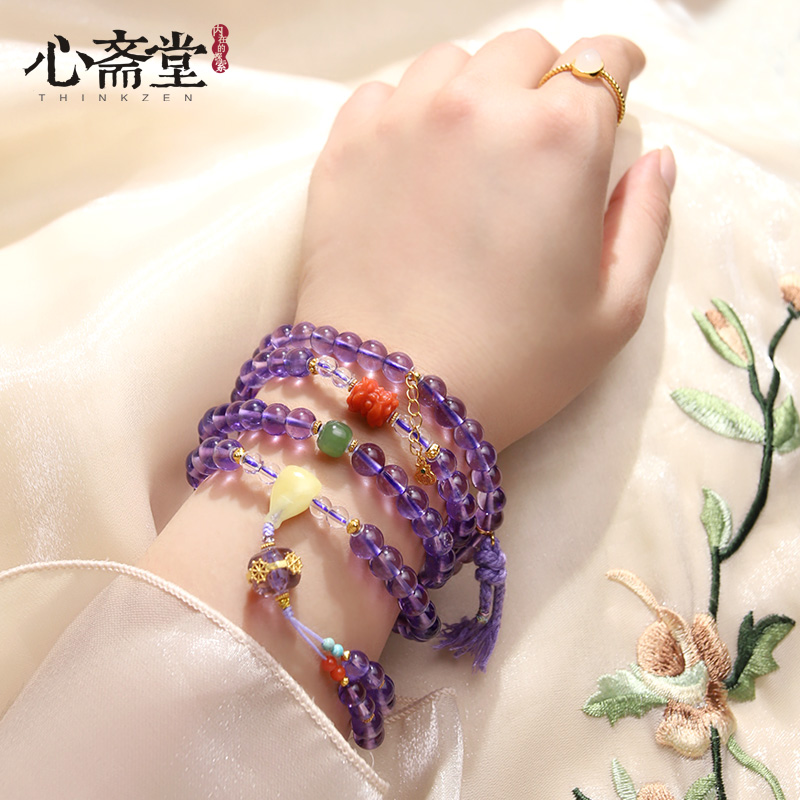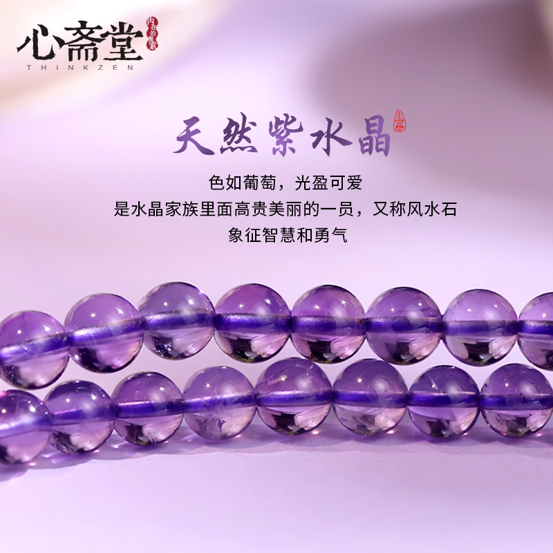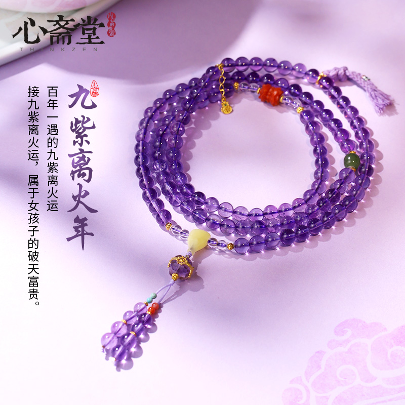 心斋堂【九紫离火】紫水晶手链女天然正品水晶佛珠108手串送礼物