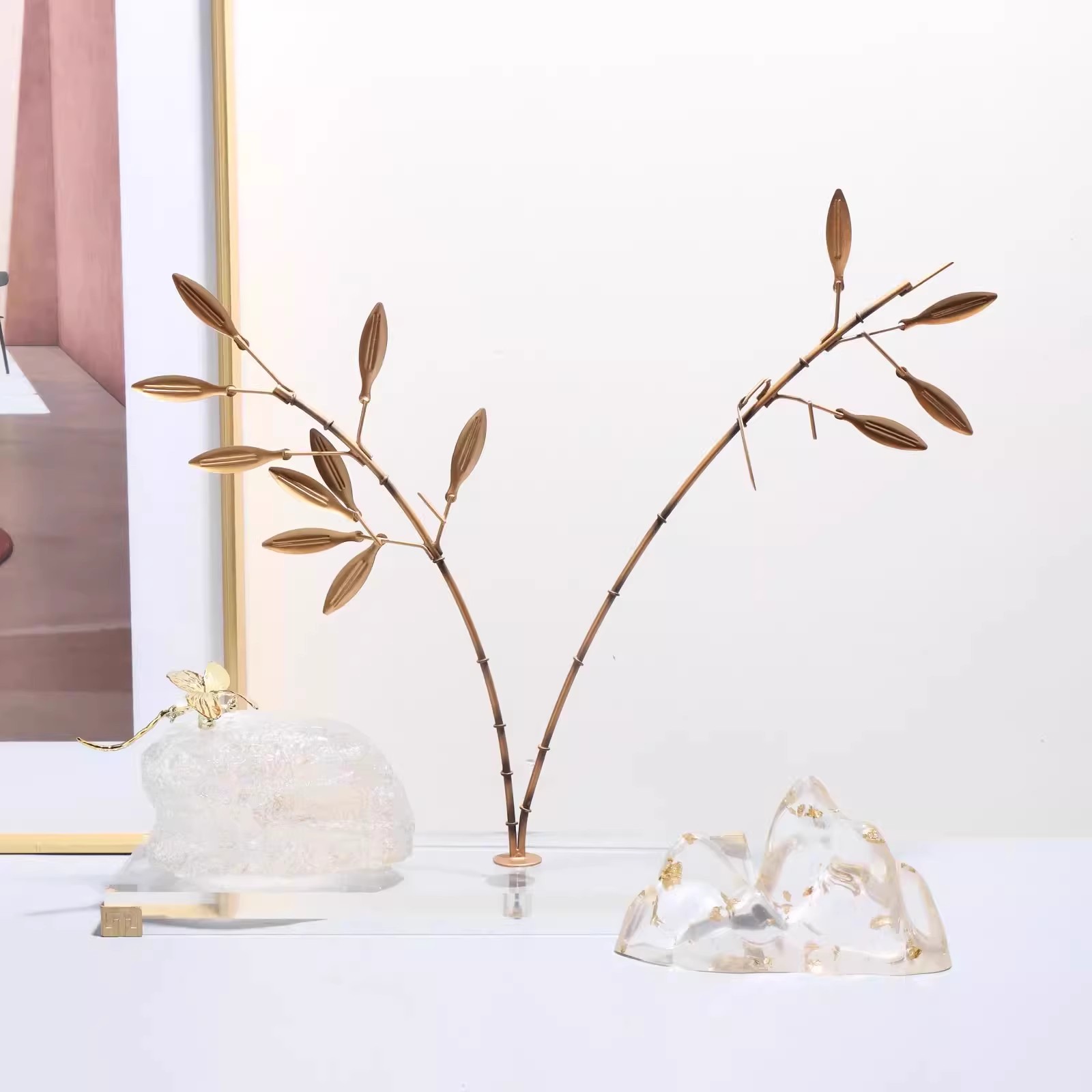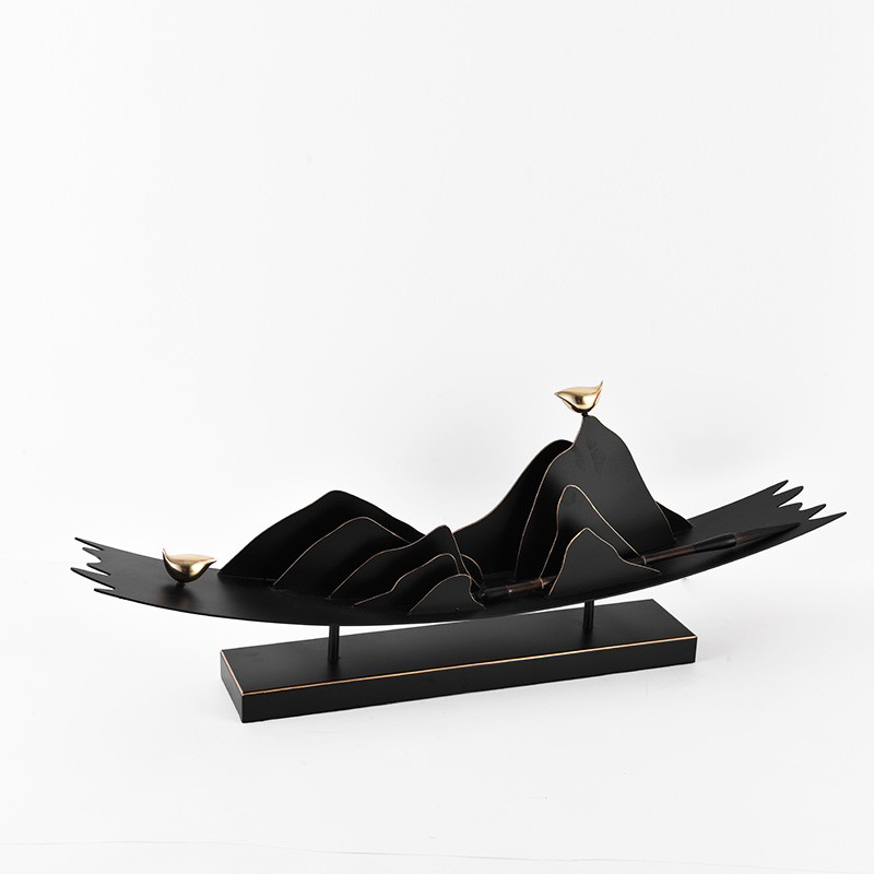 新中式落地金属创意摆件样板房售楼处酒店工艺铁片软装装饰品摆设