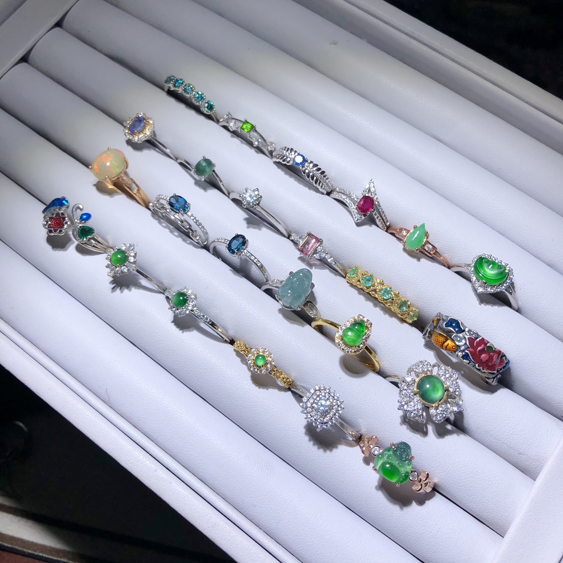 1A861 天然彩色宝石戒指s925银一物一图祖母绿蓝宝石碧玺欧泊翡翠