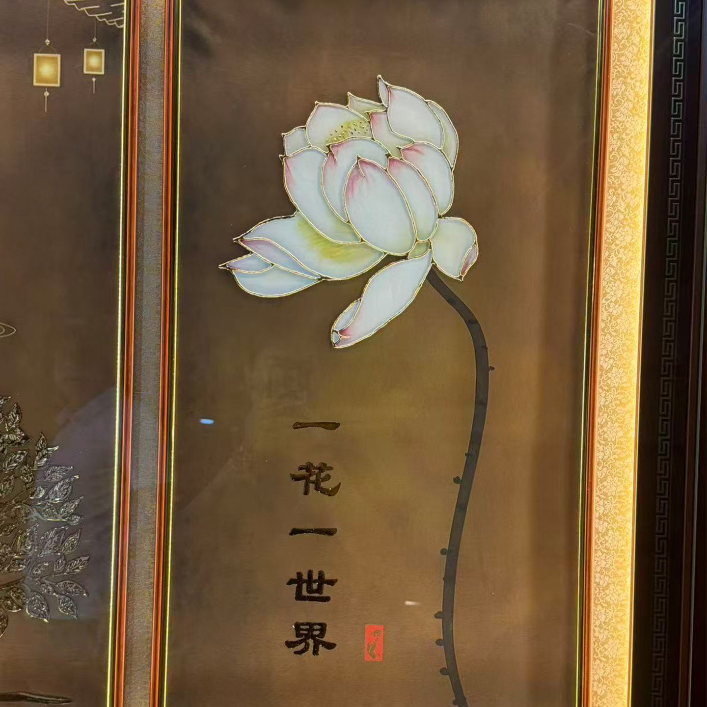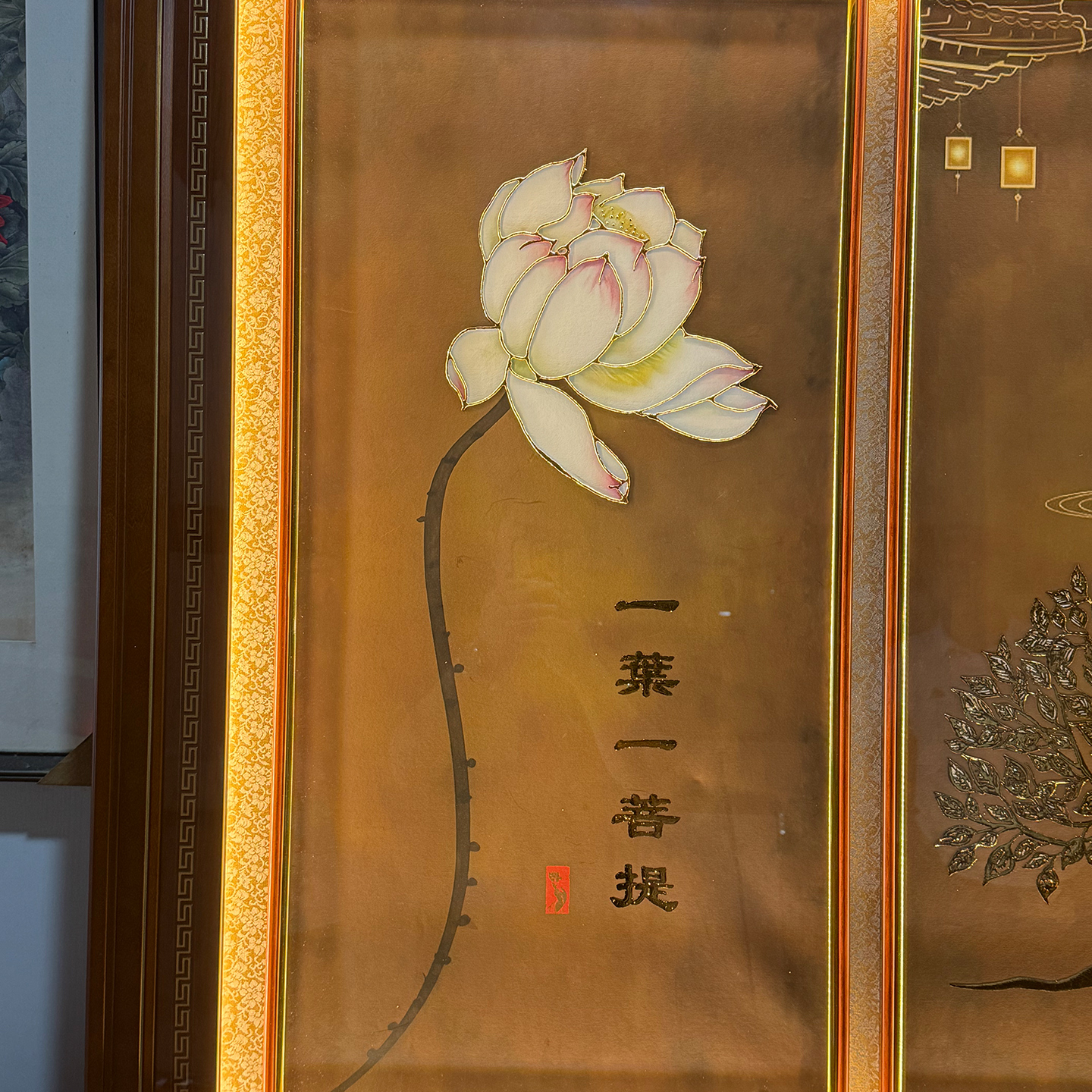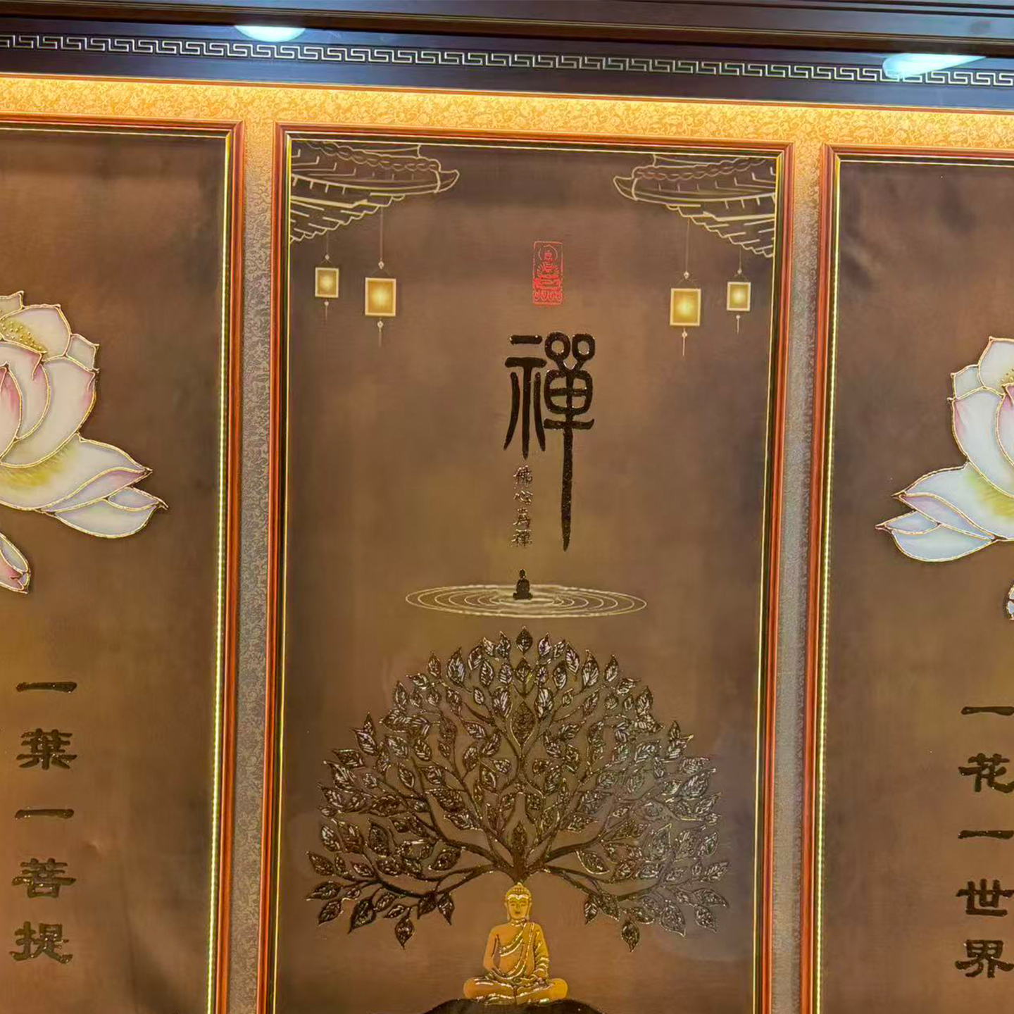 实木装饰挂画LED灯带中式佛堂供桌中堂悬挂家用客厅玄关手绘挂画