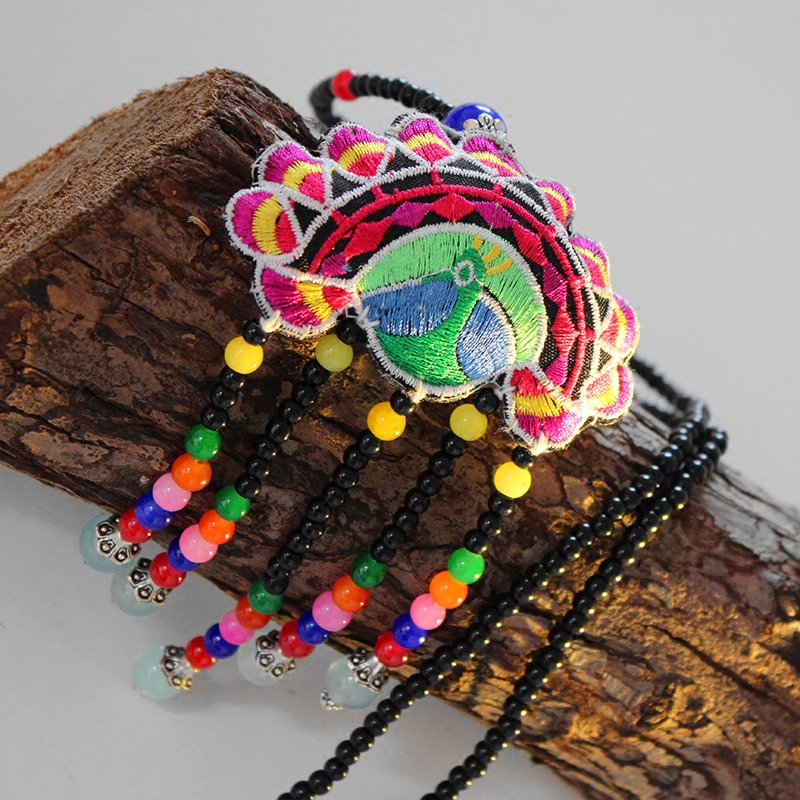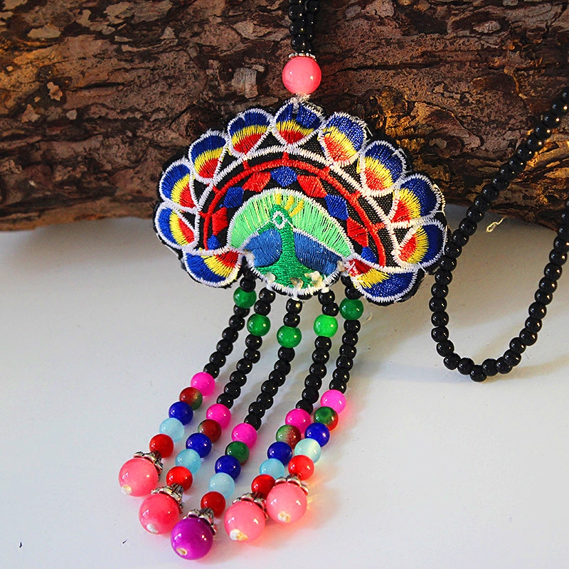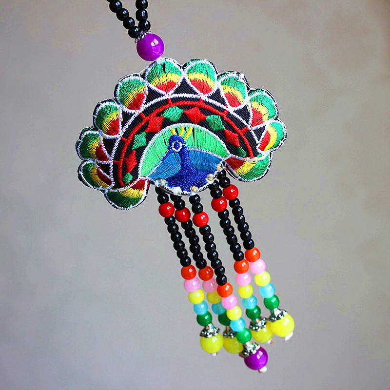 云南民族风手工毛衣链女式吊坠长款孔雀项链复古原创刺绣装饰链