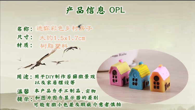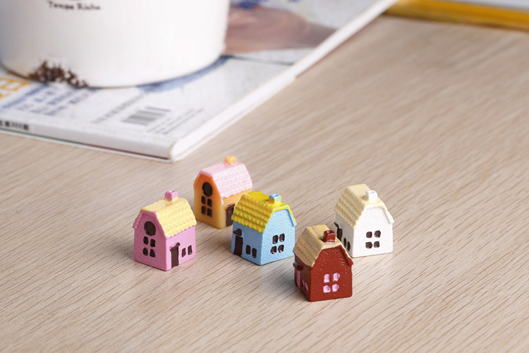 1.7cm迷你5色乡村小房子卡通中式房屋微景观树脂彩绘造景小摆件