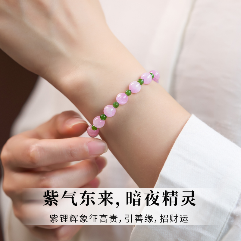 天然紫锂辉手串薰衣草紫色玉石宝石手链女款和田玉设计款