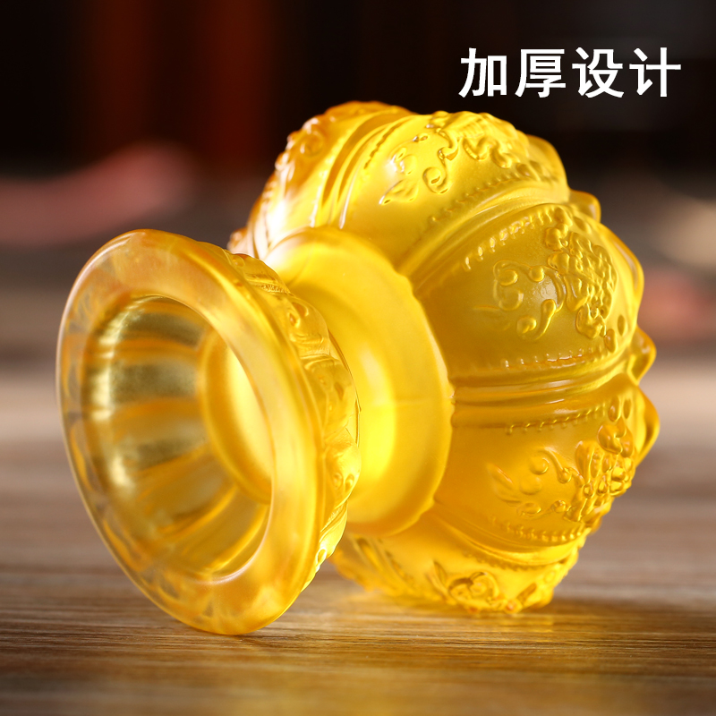 博福琉璃高脚八吉祥彩色水琉璃供水杯供杯供水碗圣水杯净水供水碗