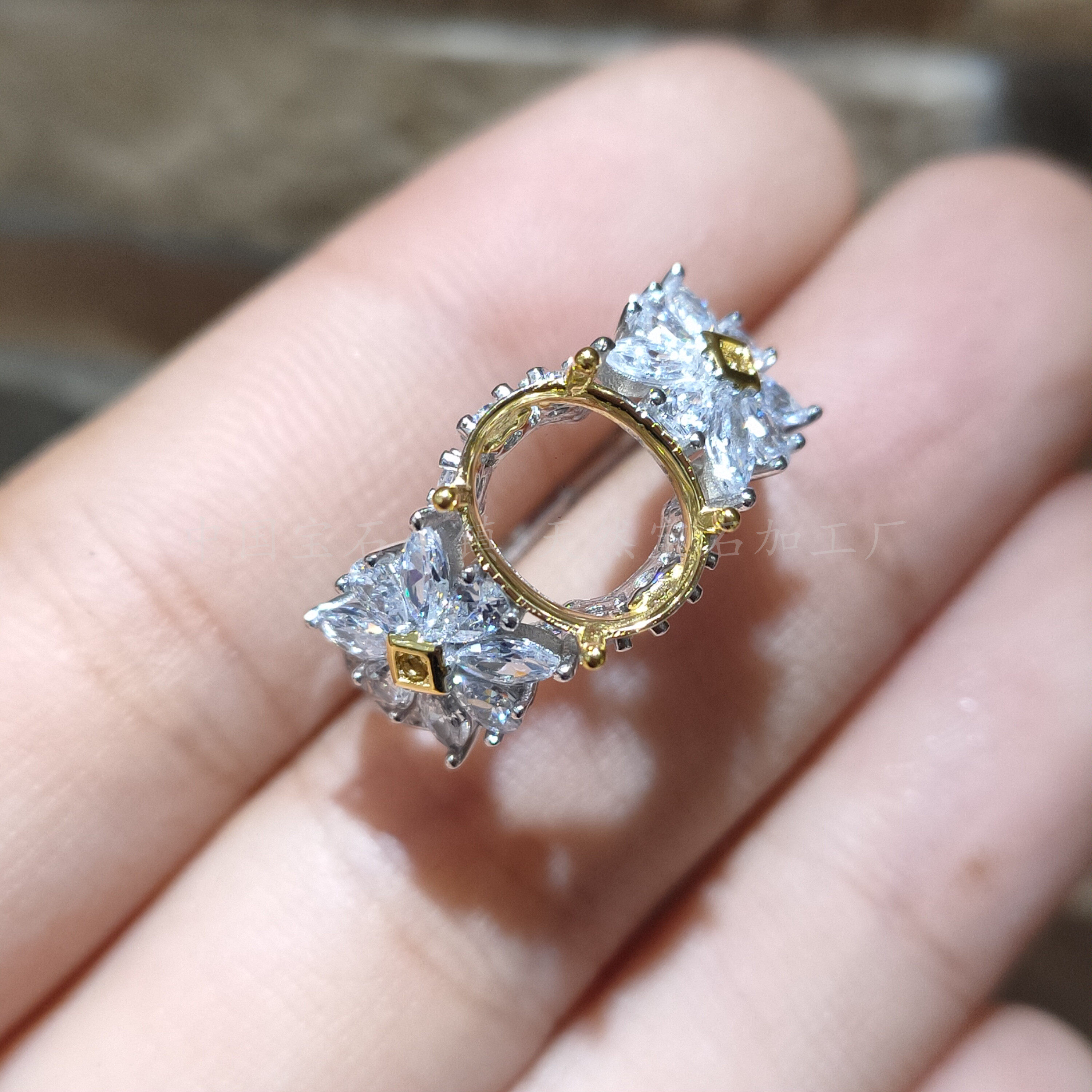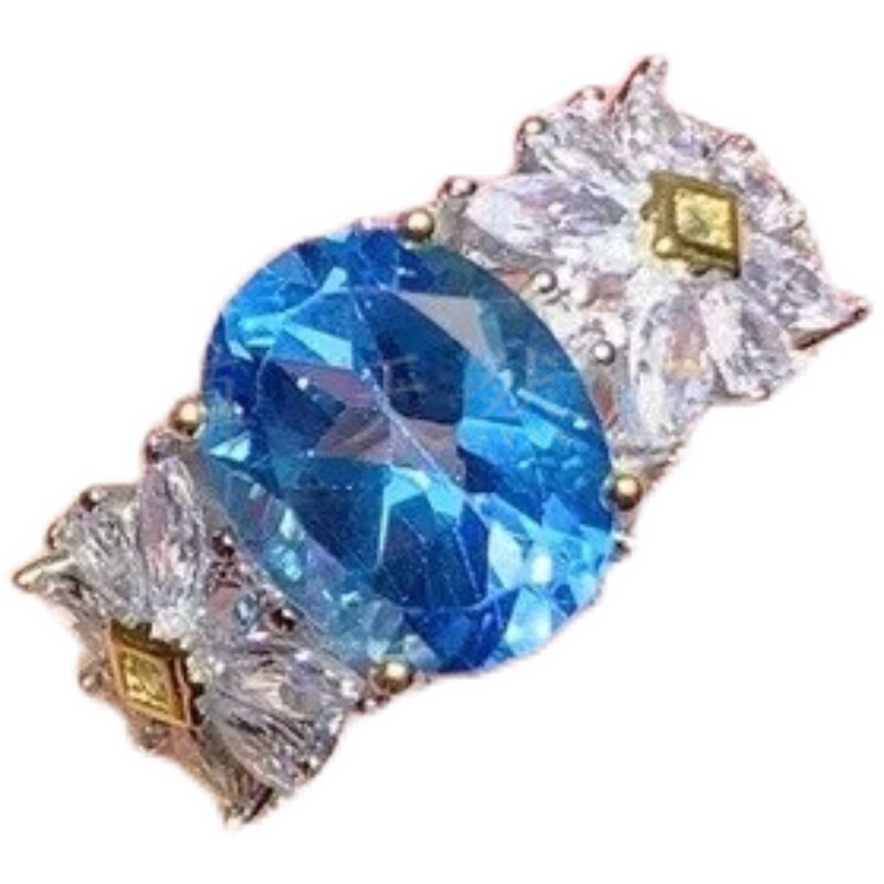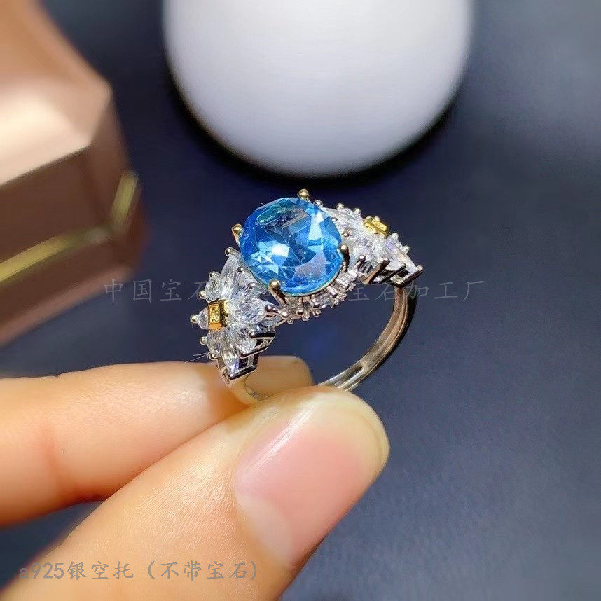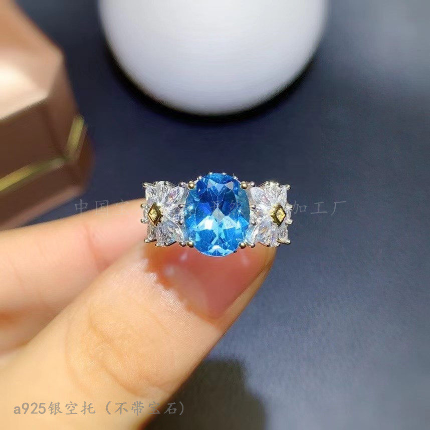 s925纯银戒指空托 椭圆8*10mm镀双色镶钳晶石蛋面 蓝托帕时尚日韩