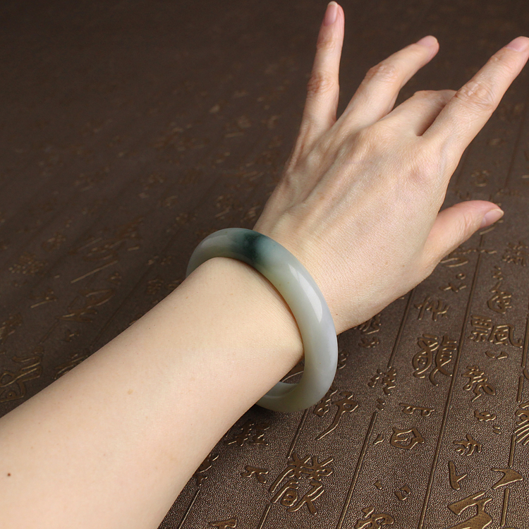 N57.2飘蓝花且末料白玉手镯/玉镯 瑷和®开仓 新疆和田玉