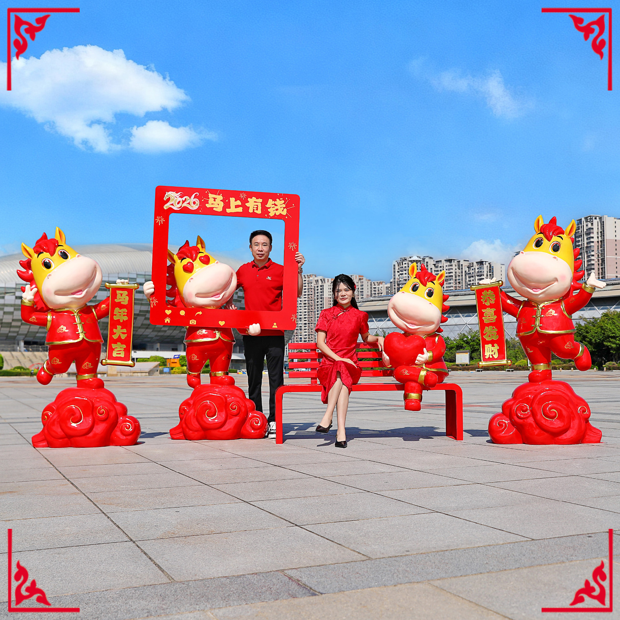 户外卡通新年马雕塑春节吉祥物商场装饰2026年发光互动打卡大摆件