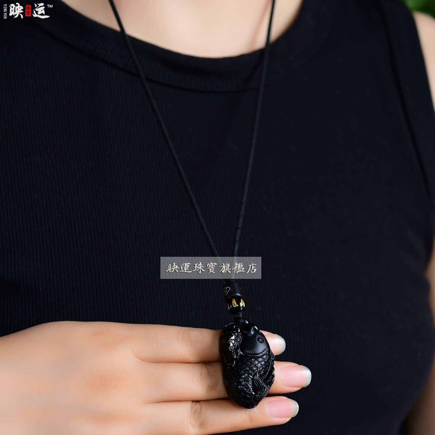 天然黑曜石文昌鱼吊坠鲤跃龙门上岸锦鲤挂件金榜题名学生考生考试