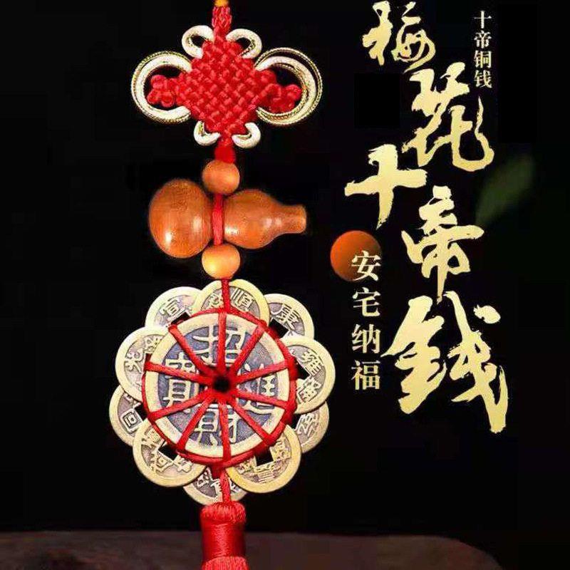 新年摆件桃木真黄铜葫芦五帝钱挂化门对门梅花十帝钱汽车挂件