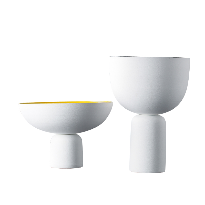 现代北欧磨砂哑j光高脚陶瓷果盘摆件样板房家居客厅撞色花瓶装饰