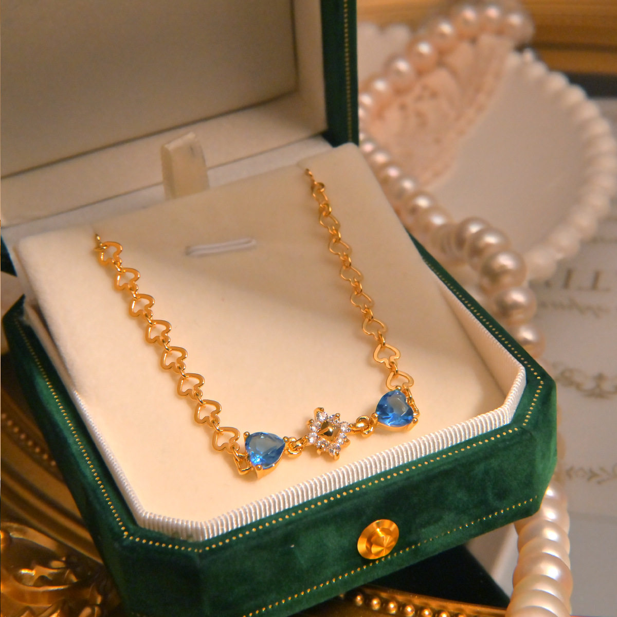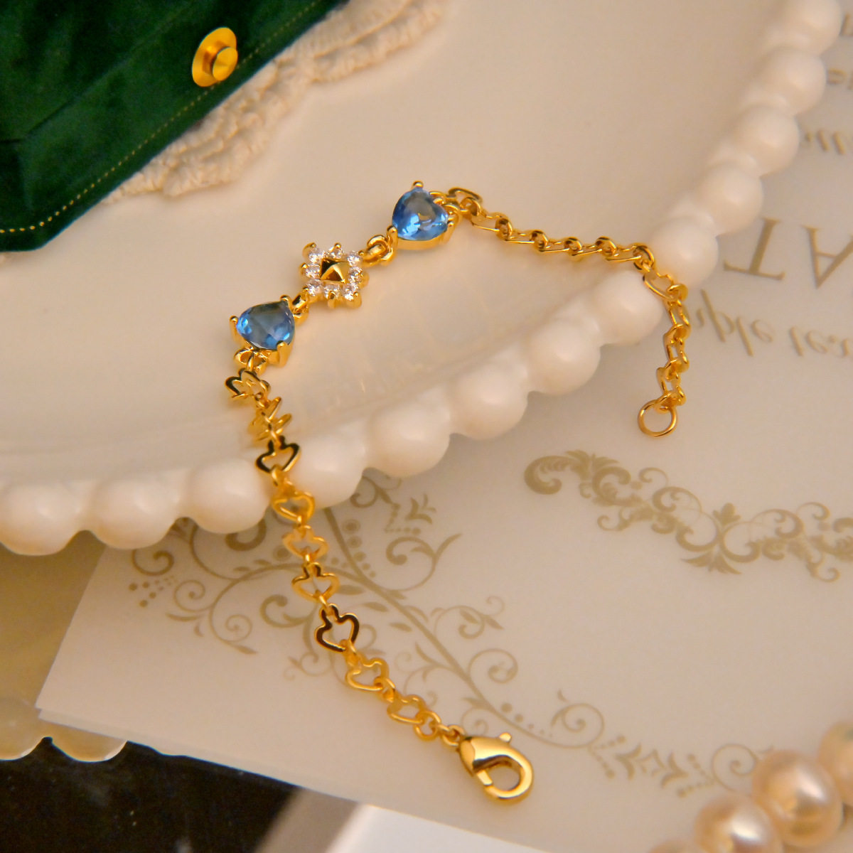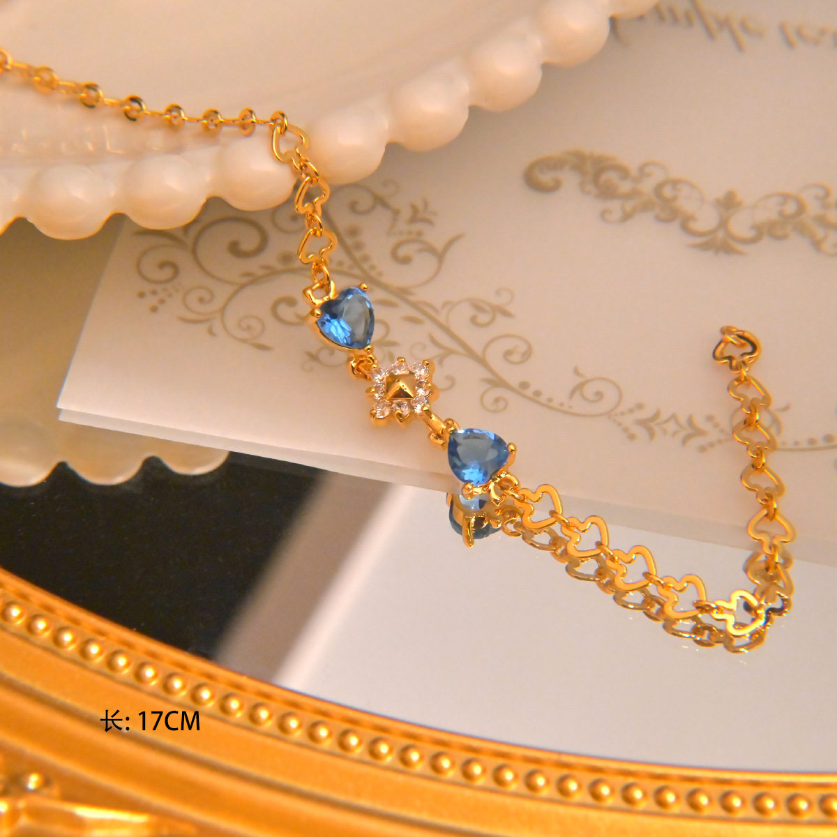 法式复古手饰优雅蓝色锆石爱心手链高级感设计手链手镯女