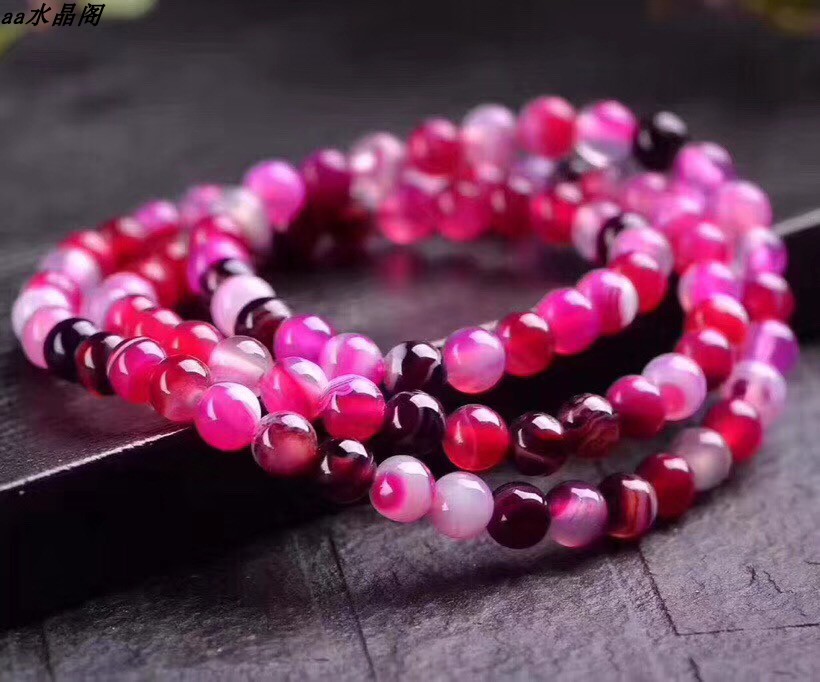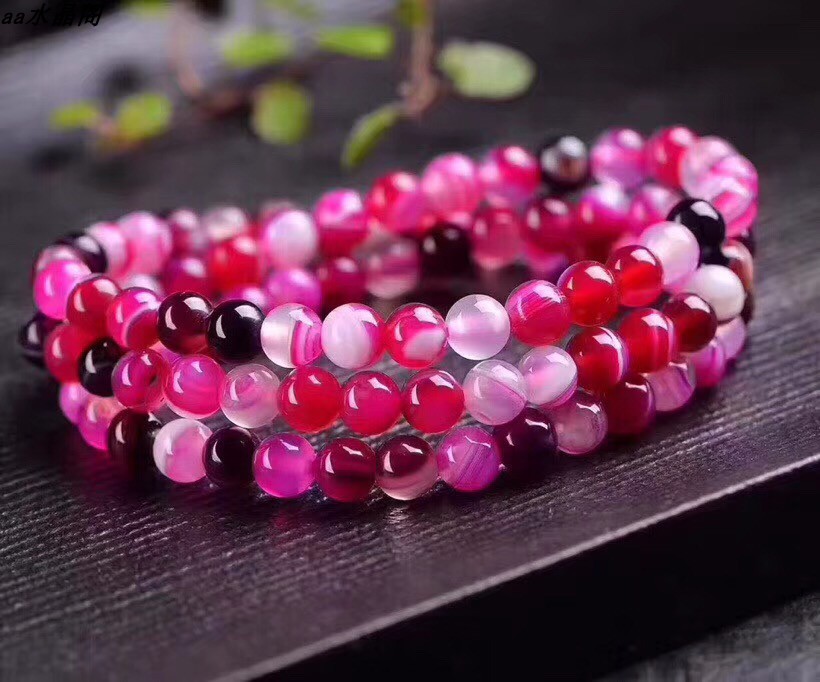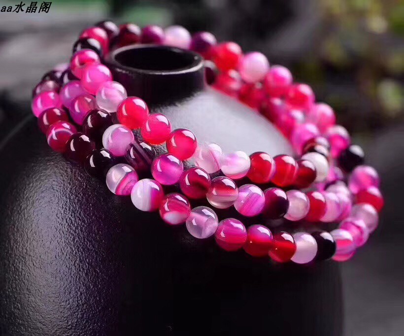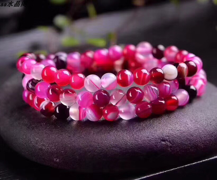 天然玫红条纹玛瑙散珠子半成品DIY手工水晶手链串珠男女饰品配件