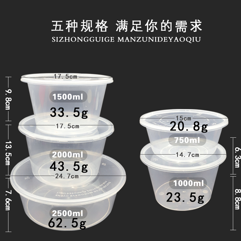 圆形750ML一次性餐盒塑料外卖打包盒饭盒一次性碗加厚带盖汤碗