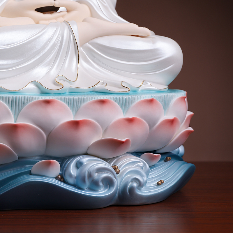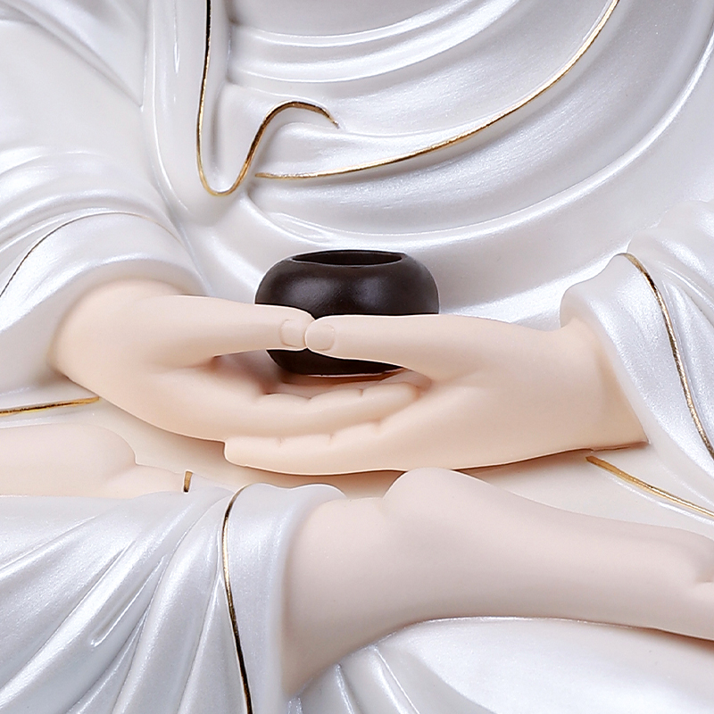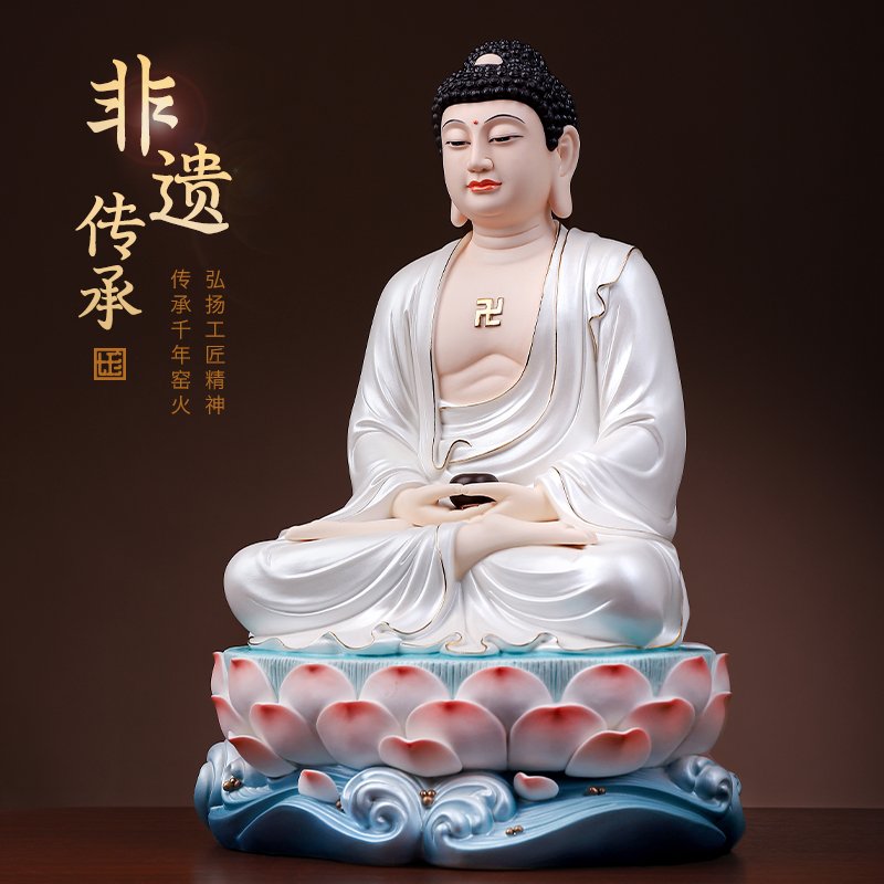 七珍陶瓷16英寸慈慧如来佛佛像珍珠白家用客厅供奉释迦牟尼佛摆件