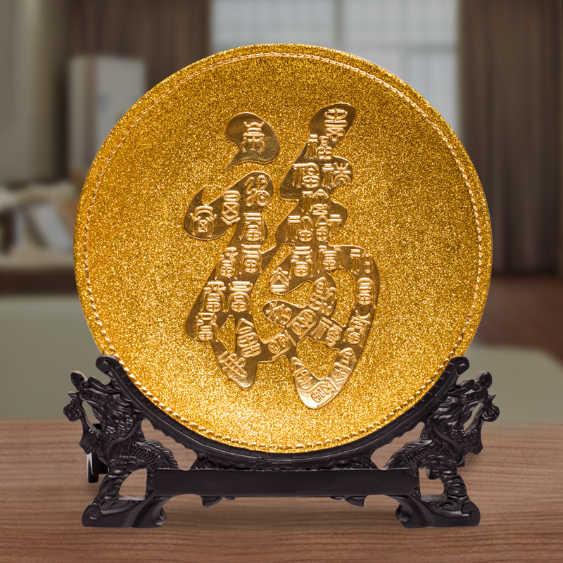 金箔百福图金盘赏盘挂盘摆件客厅装饰搬家礼物乔迁新居礼品送朋友