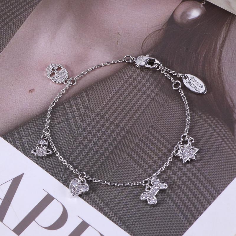 欧美时尚土星系列骷髅骨头爱心镶嵌满钻多坠镀金链条个性小众手链