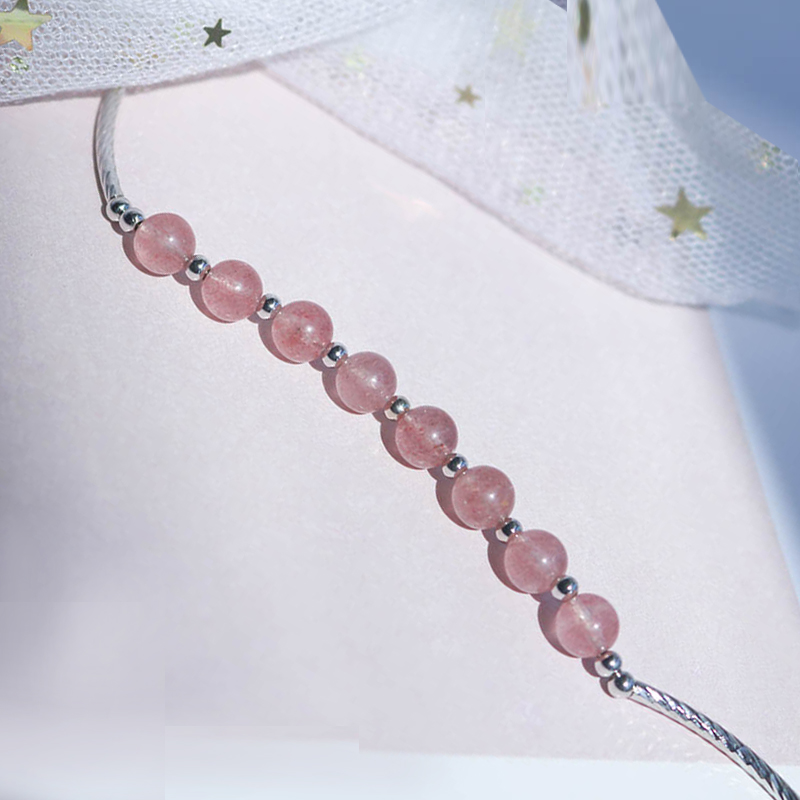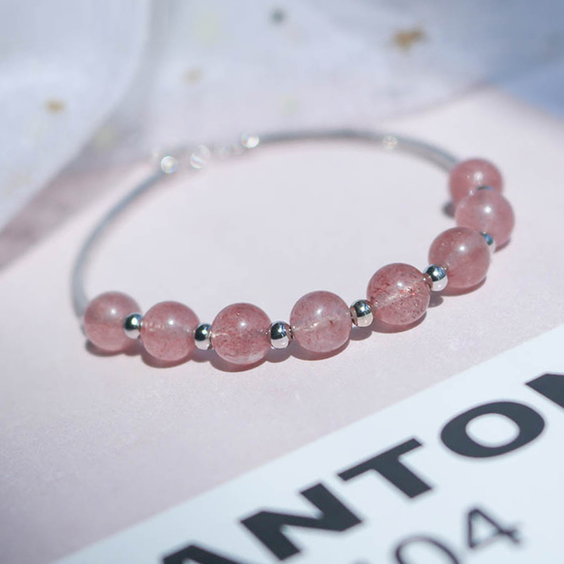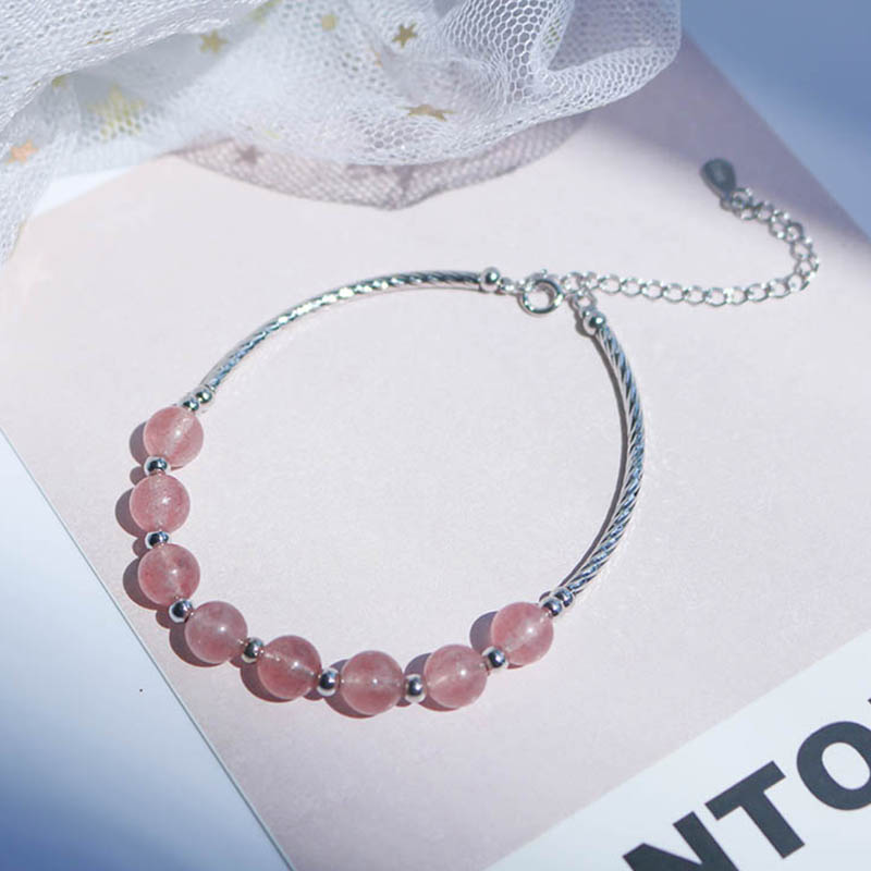 双层纯银草莓晶月光石手链女清新学生简约少女心闺蜜礼物百搭手镯