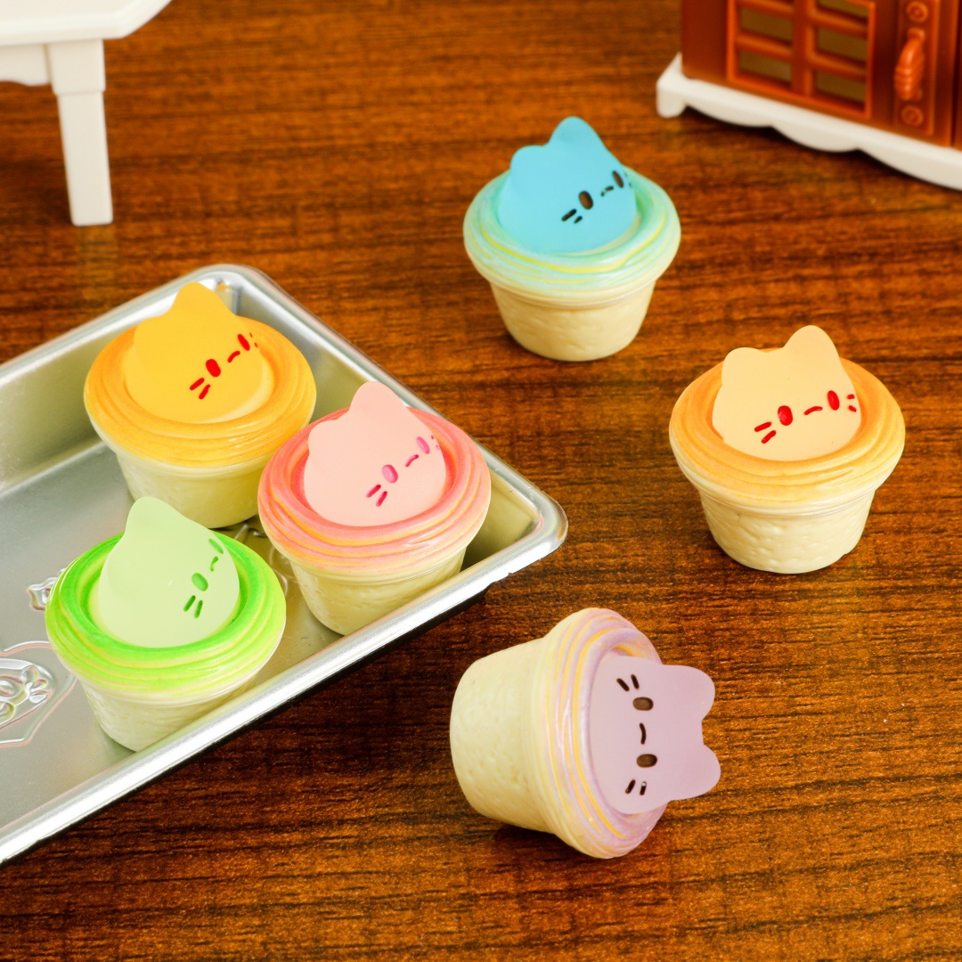 夜光猫咪蛋挞 微缩磨砂底亮油DIY仿真食玩手机冰箱贴迷你超市配件