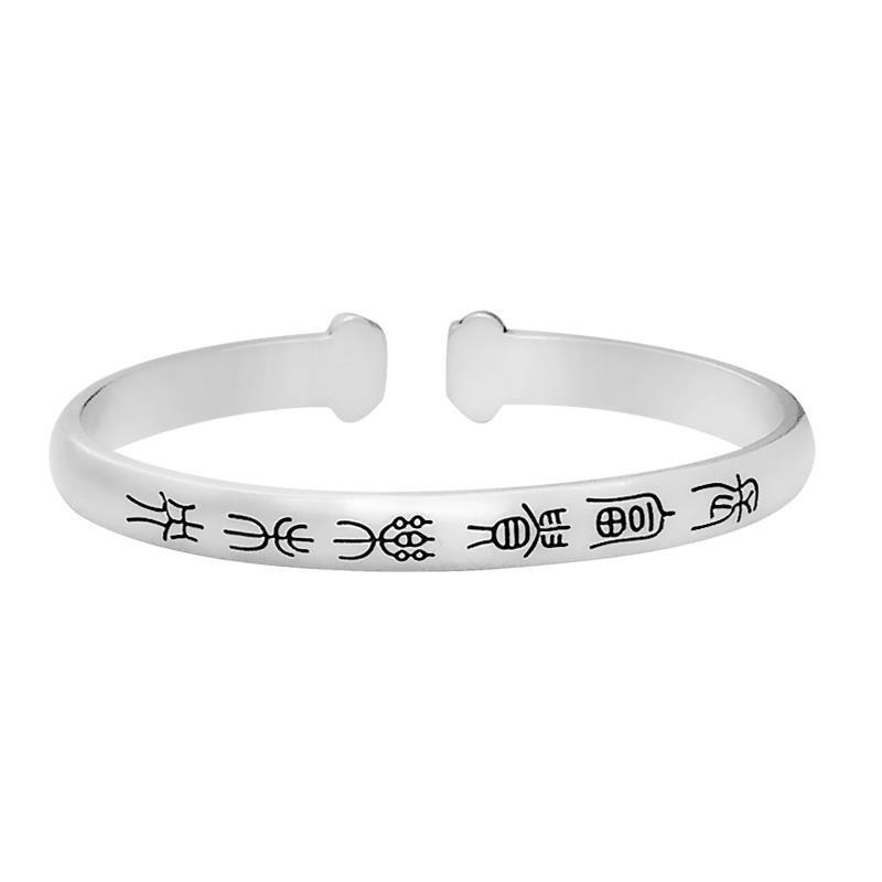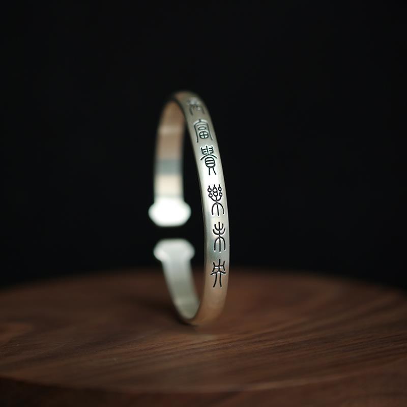 高档小篆体古意汉风《长乐未央》银99纯银手镯喜如足镯 喜9竹原创