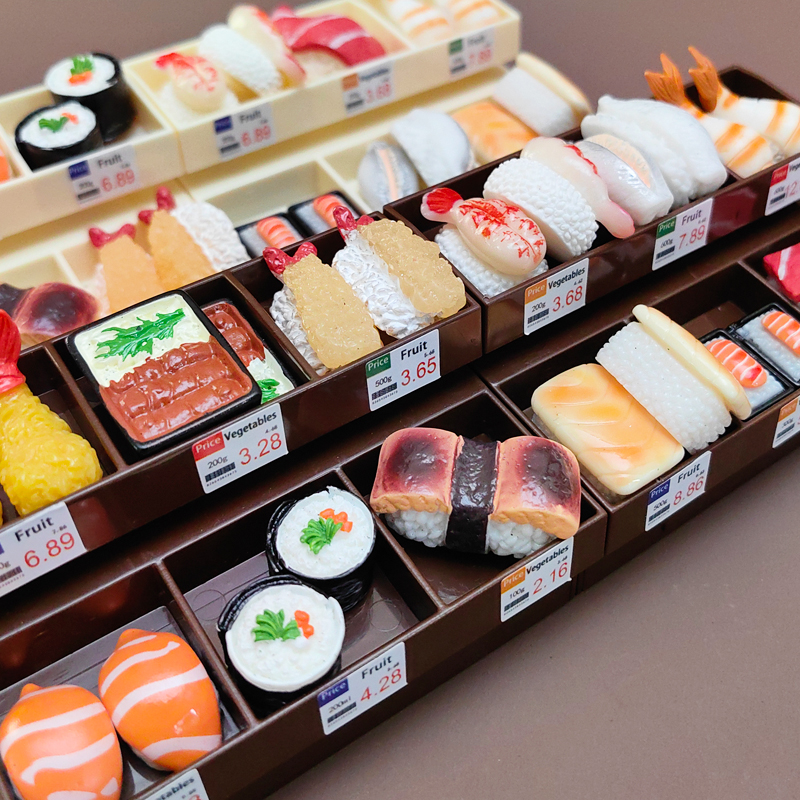 创意仿真日式寿司食玩微缩超市货架模型迷你鳗鱼饭微景观装饰配件