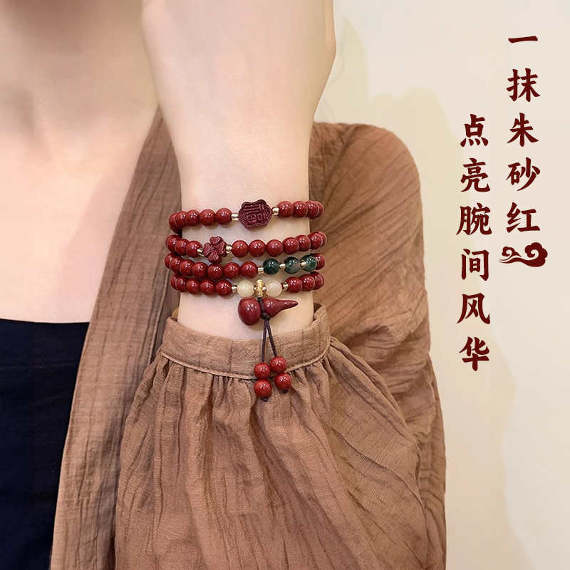 新中式多层缠绕朱砂手链女轻奢小众精致手串2025年新款高级感手饰
