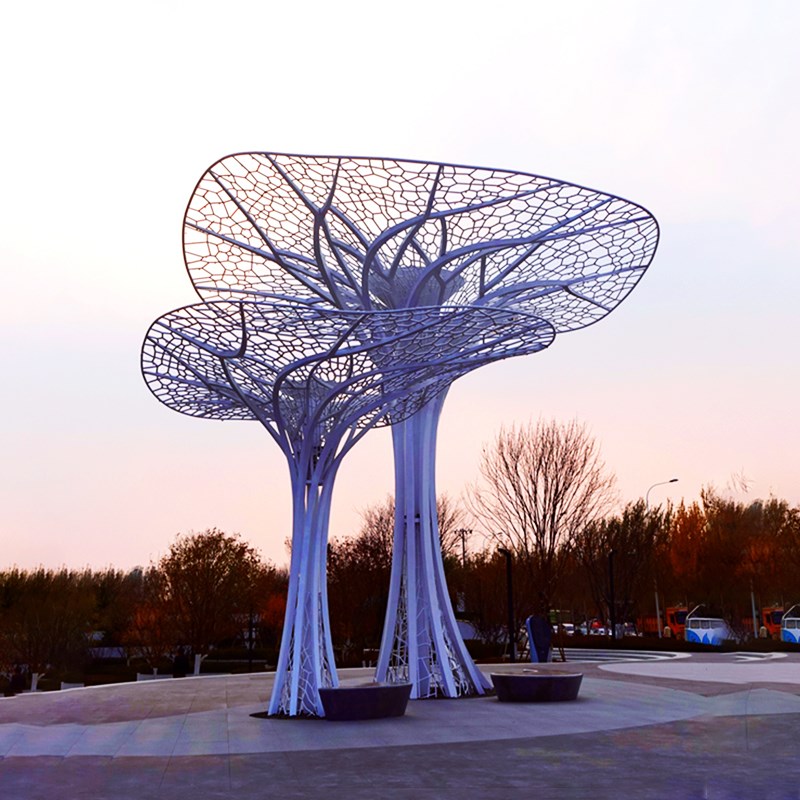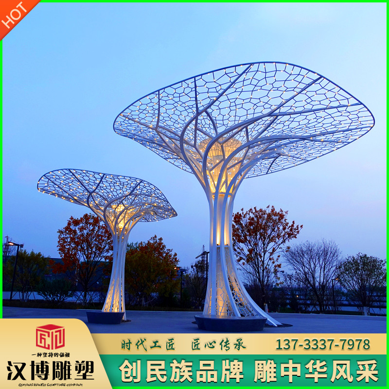 户外大型不锈钢树雕塑铁艺金属发光景观小品定制城市园林地标摆件
