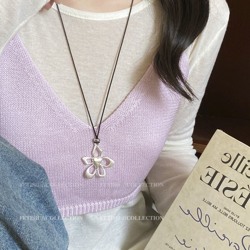韩国ins博主同款镂空花朵吊坠项链女高级感轻奢长款毛衣链配饰品