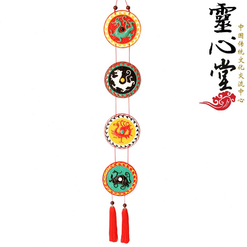 桃木房屋彩雕刻四纹神 角补角 绘 四神兽 挂件桃木缺