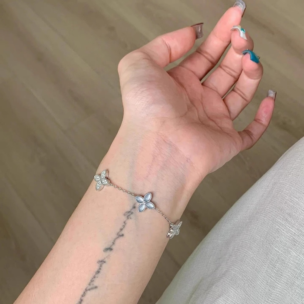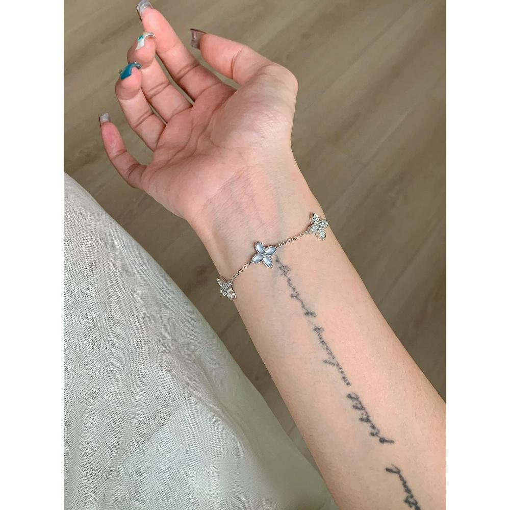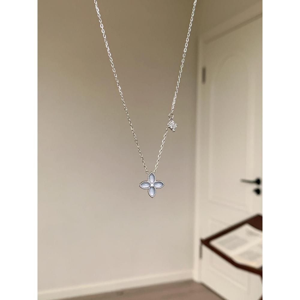 清冷感灰蓝色四叶草仿贝母手链轻奢时尚百搭小众高级感项链手饰品