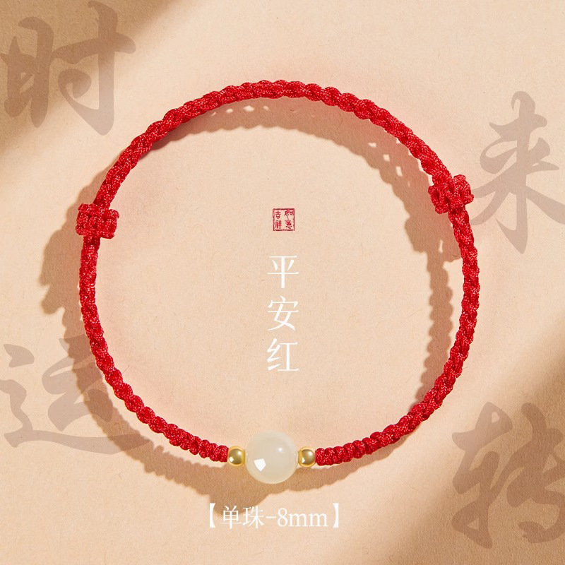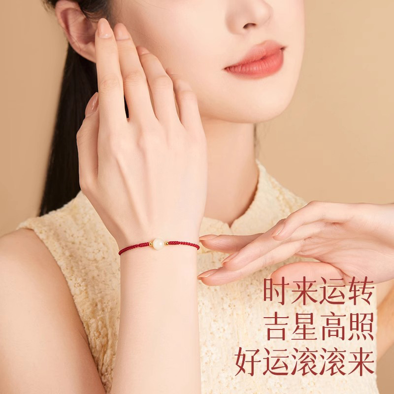 本命年红色手绳女红绳仿和田玉转运珠手链编织手绳情侣款