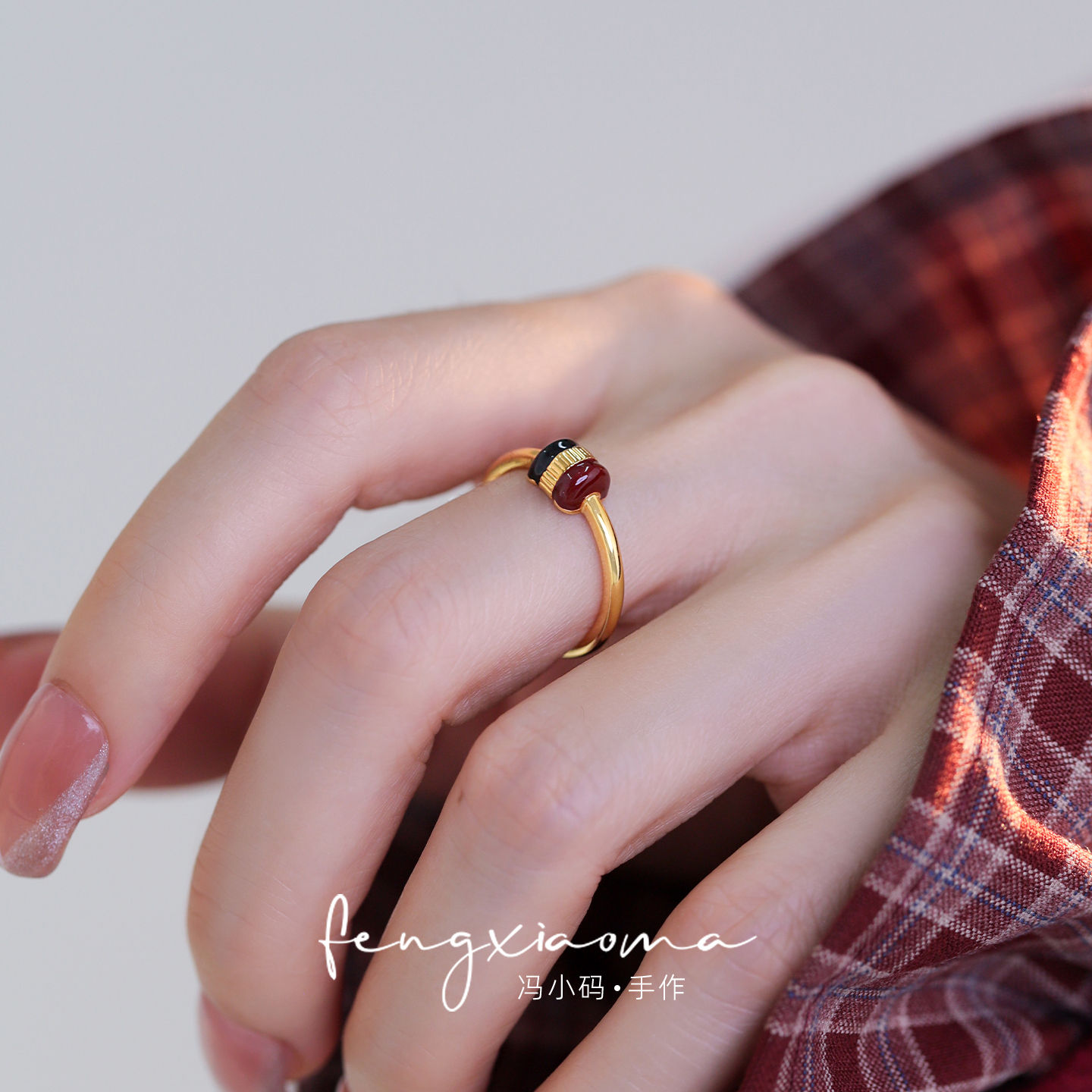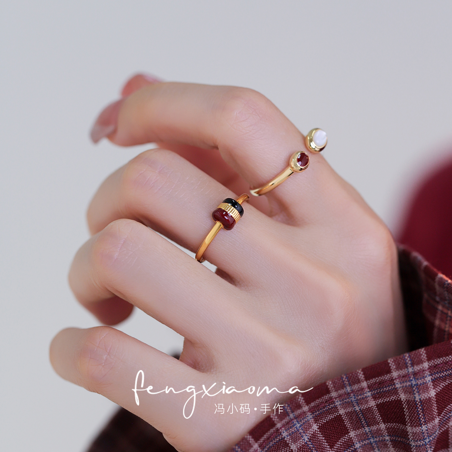 简约时尚百搭撞色滴油戒指女款轻奢小众设计高级感食指戒配饰指环