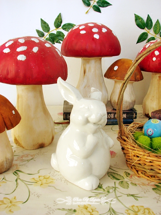 林间歌。外单外贸田园美式乡村地中海浮雕白瓷兔子摆件拍照道具