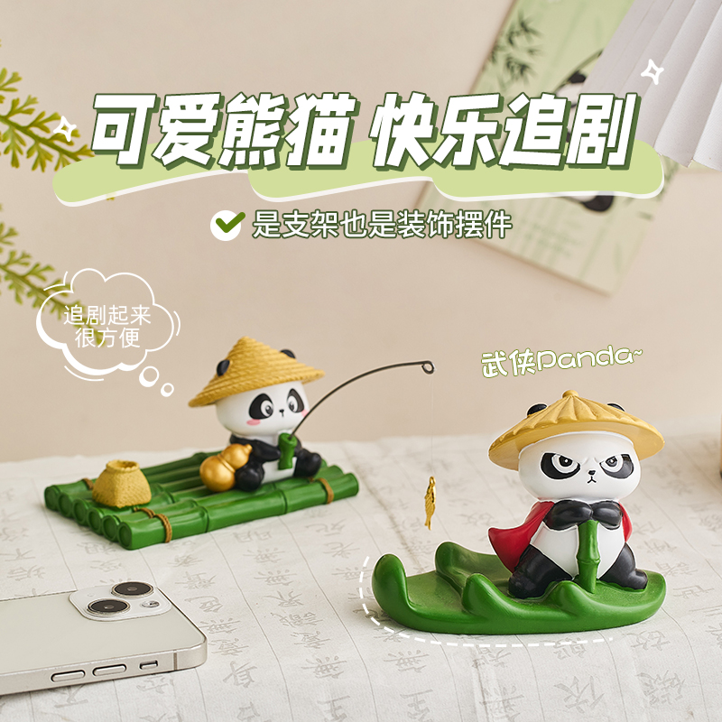 熊猫追剧手机支架桌面可爱女生工位情绪稳定神器治愈系解压小礼物