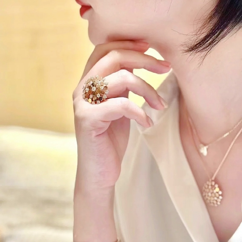 2025新款时尚个性蜂巢大雪花烟花满钻925纯银镀18K金食指戒指环女